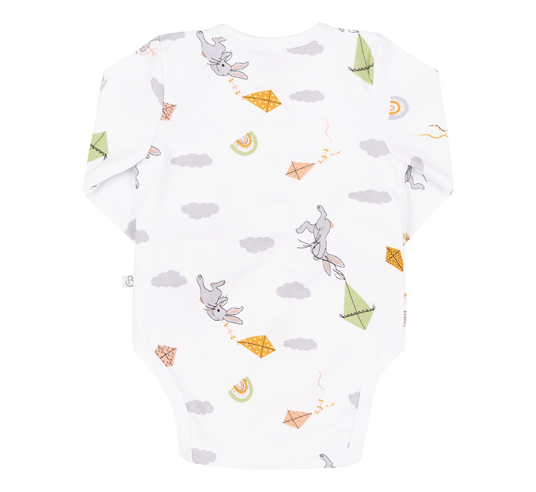 Боді білого кольору із симпатичним дитячим малюнком та довгими рукавами. Модель універсальна, підійде і для хлопчика, і дівчинки. Боді виконано з тканини інтерлок, що складається зі 100% натуральної бавовни. Виріб забезпечує максимальну м'якість та комфорт для ніжної дитячої шкіри. Боді має зручне кріплення на кнопках спереду та внизу, що робить його надягання та зняття максимально простим. Це також дозволяє швидко та легко міняти підгузки без необхідності знімати весь одяг.