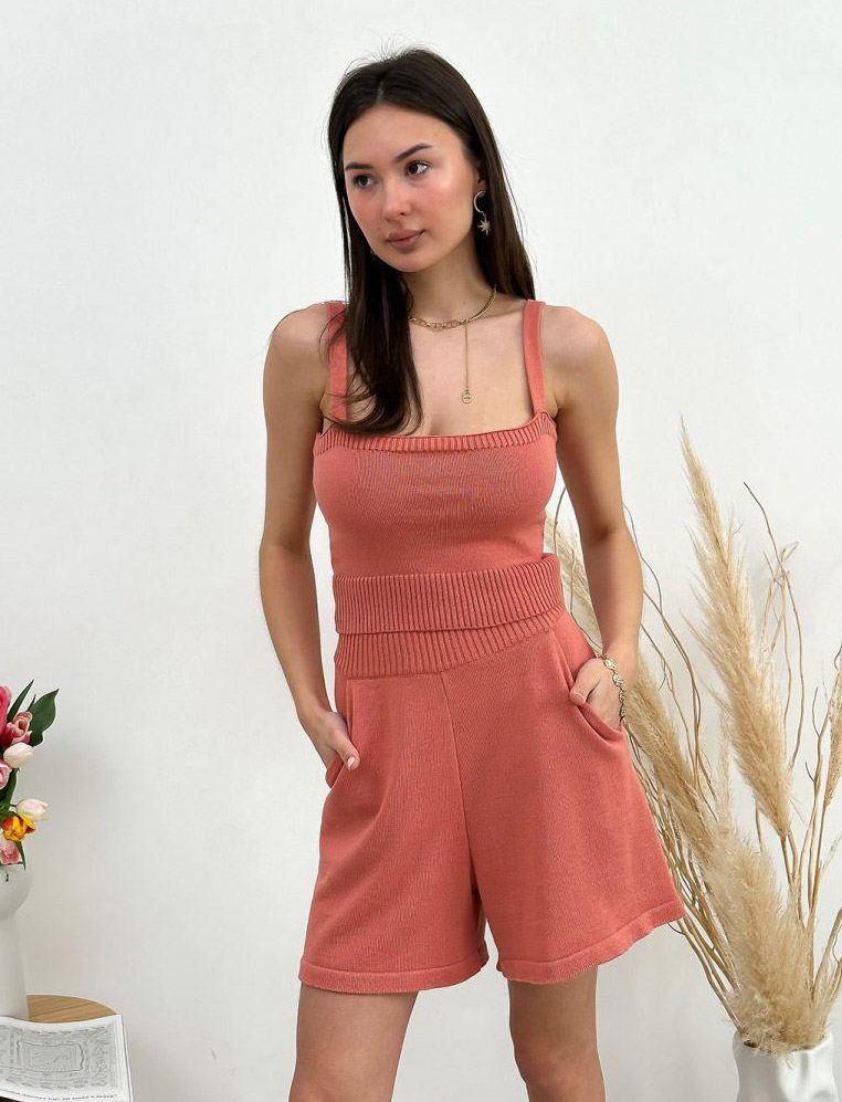 Cтильні однотонні шорти коралового кольору. Модель з високою посадкою в талії та прорізними кишенями. Шорти машинної в'язки, чудово підійдуть для повсякденного носіння влітку, стануть гарним акцентом у гардеробі. Однотонний дизайн робить шорти універсальними, легко поєднується з різним одягом та аксесуарами. Пряжа з натуральної бавовни та акрилу м'яка, приємна до тіла, не парить, відмінно пропускає повітря, забезпечує комфорт та затишок, водночас практична та довговічна в експлуатації.