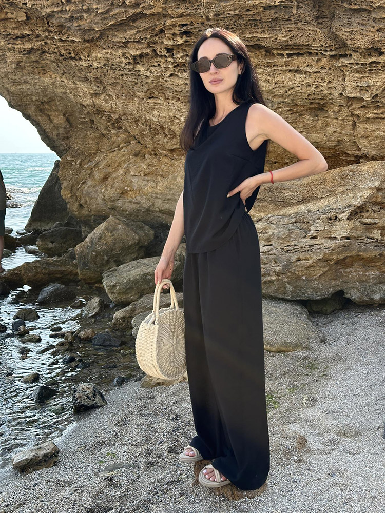 Стильні легкі штани чорного кольору з колекції LUMIA. Універсальне рішення для літа. М'яка віскозна тканина з делікатним блиском приємно лягає по тілу, не просвічується і дарує відчуття легкості.