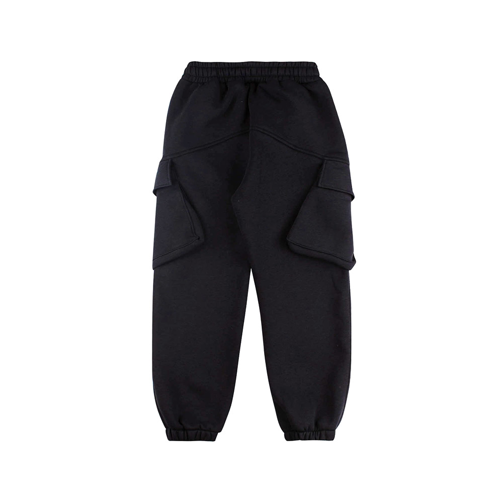 Трикотажні однотонні штани графітового кольору. Штани в спортивному стилі, виконані з бавовняної тканини трикотаж-шардон. Матеріал приємний і комфортний, практичний, ідеально підійде для міжсезоння. Модель з двома прорізними кишеньками і з двома великими кишенями з клапанами, на поясі зручна широка гумка і шнур.