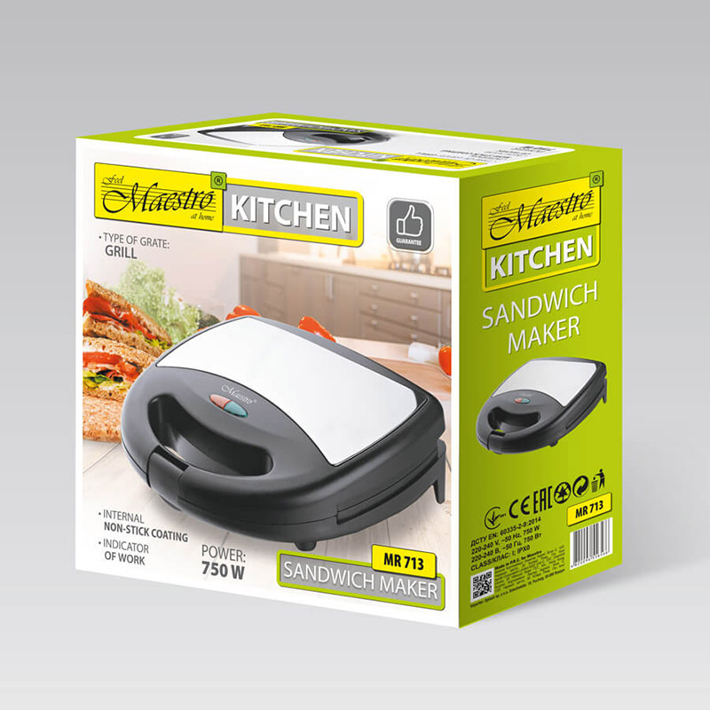 Сендвічниця MR-713 - це зручний і практичний прилад для швидкого приготування гарячих бутербродів, паніні та інших закусок. Оснащена антипригарними пластинами, що забезпечують рівномірне прожарювання і легке очищення. Компактний дизайн і ергономічна ручка роблять її зручною у використанні та зберіганні. Сендвічниця має індикатори нагріву та готовності, що гарантує безпеку експлуатації.