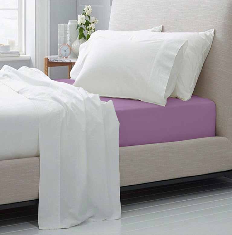 Однотонна натяжна простирадло фіолетового кольору з натурального і практичного бязевих матеріалу. Виріб стане гарним кольоровим акцентом в спальні, забезпечить комфортний сон. Завдяки гумці простирадло легко і швидко одягається на матрац, не сповзає під час експлуатації.