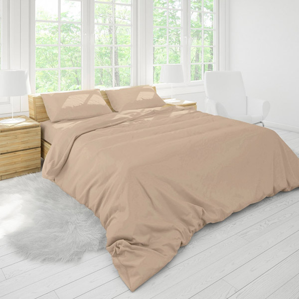 Бязева однотонна підковдра бежевого кольору. Тканина з бавовни з додаванням поліестеру легка і комфортна, добре пропускає повітря, водночас практична в експлуатації. Завдяки однотонному дизайну, ця підковдра стане чудовим доповненням до інтер'єру спальні.