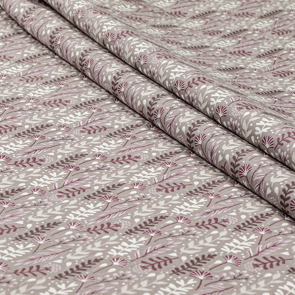 Бязева підковдра сіро-лілових відтінків з красивим рослинним принтом. Легка і комфортна тканина з натуральної бавовни відмінно пропускає повітря, дарує затишок під час сну і відпочинку. Завдяки хорошим якостям тканини і привабливому дизайну, ця підковдра стане чудовим доповненням до інтер'єру спальні.