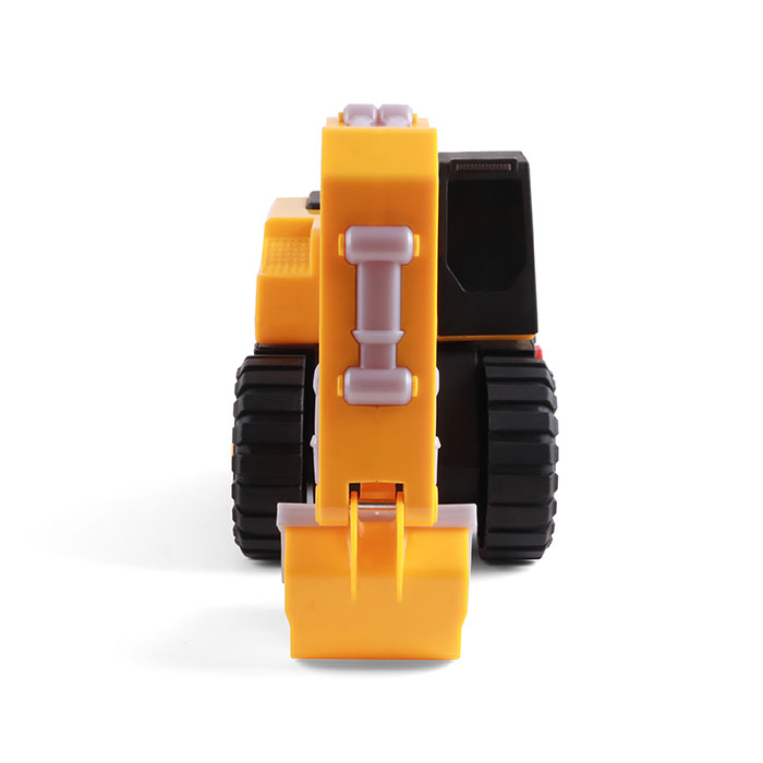 Ви готові гуркотіти?! Запустіть запалювання автомобіля натисканням верхньої кнопки на корпусі або піднявши ківш екскаватора. Решта кнопок активують реалістичні звуки - двигун, що працює, подача заднього ходу і гідравлічні звуки, миготливі вогні і вібрацію працюючого двигуна. Вільний хід коліс. Є кнопка вимкнення звуку.