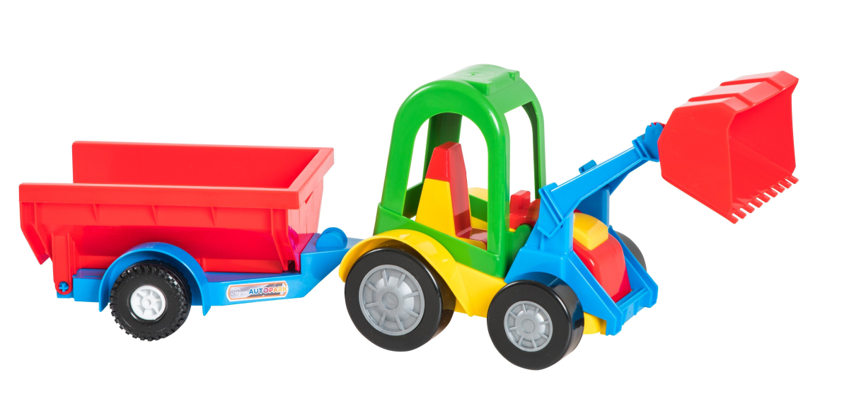 Іграшкова машинка трактор-баггі з ковшем і причепом - яскрава і цікава іграшка для задоволення і розвитку малюка. Трактор-баггі з ковшем і причепом має рухомі елементи, завдяки чому грати дітям буде ще цікавіше. Машинка має міцну конструкцію, малу вагу і проста в управлінні. Іграшкова машинка ідеально підходить як для розваг вдома, так і в пісочниці. Машинка пройшла випробування в Європі.