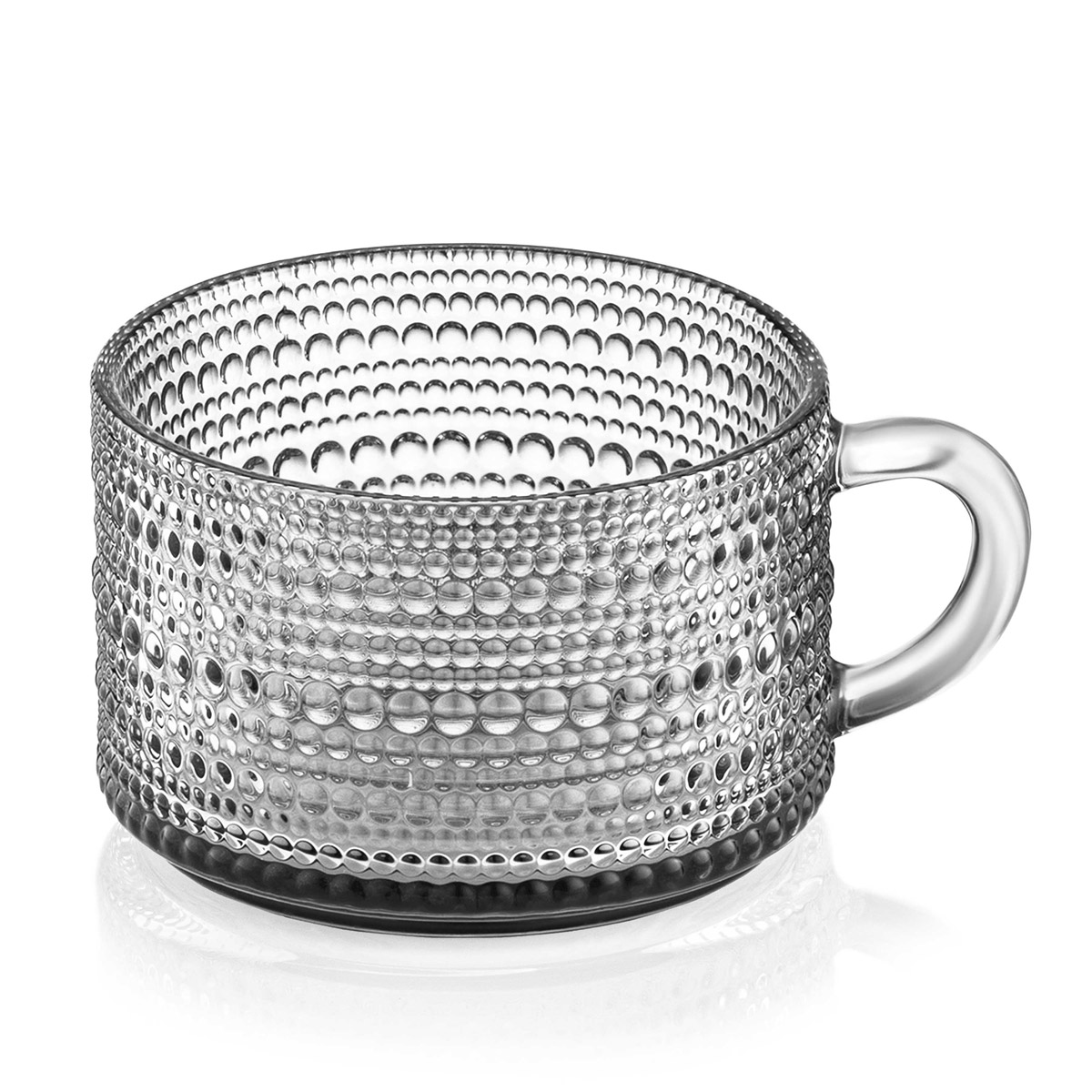 Чашка серії Verbena виконана з якісного скла і має елегантний сірий колір з рифленими стінками, що надає їй вишуканого вигляду. Розмір чашки роблять її зручною для різних напоїв. Прозоре скло додає стиль у сервірування, а рифлена поверхня привертає увагу. Чашку можна безпечно використовувати в мікрохвильовій печі і мити в посудомийній машині - ідеальний вибір для щоденного використання.