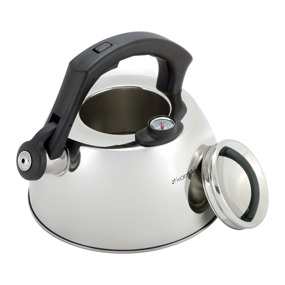 Чайник із свистком та термометром Kamille 3л 1077 виготовлений з високоякісної нержавіючої сталі. Підходить для інтенсивного щоденного використання, а його естетичний вигляд неодмінно підійде до дизайну вашої кухні. особливості: