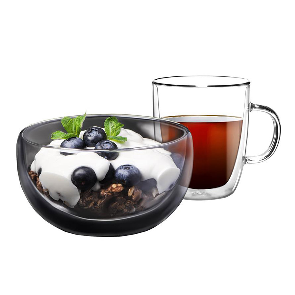 Набір для сніданку від Ardesto включає чашку 270 мл і піалу 500 мл з подвійними стінками. Виготовлені з термостійкого боросилікатного скла, що робить їх стійкими до перепадів температур. Ідеальні для повсякденного використання, зберігають довше теплими напої та їжу. Елегантний і практичний набір для комфортного початку дня.
