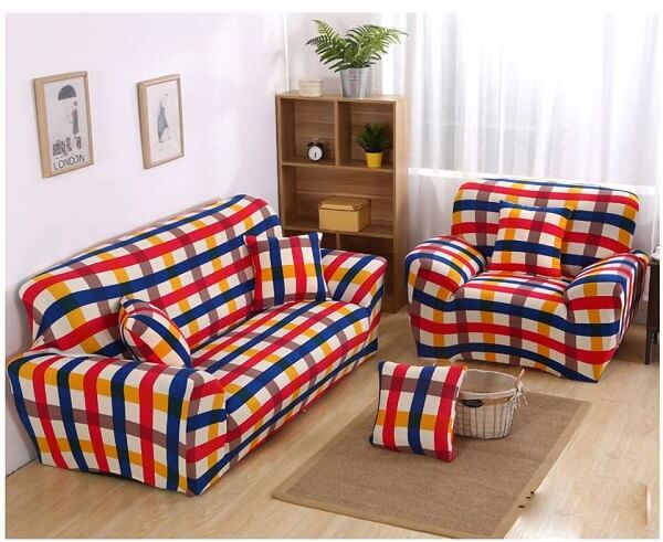 Еластичний чохол із принтом на двомісний диван