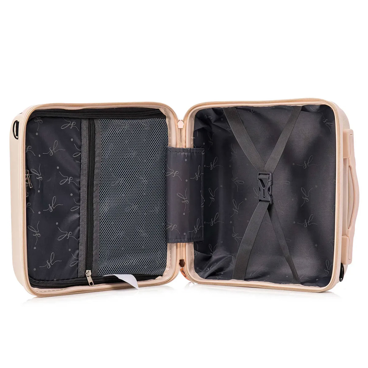 - Еластична стрічка на тильній стороні для закріплення на телескопічних ручках валіз.