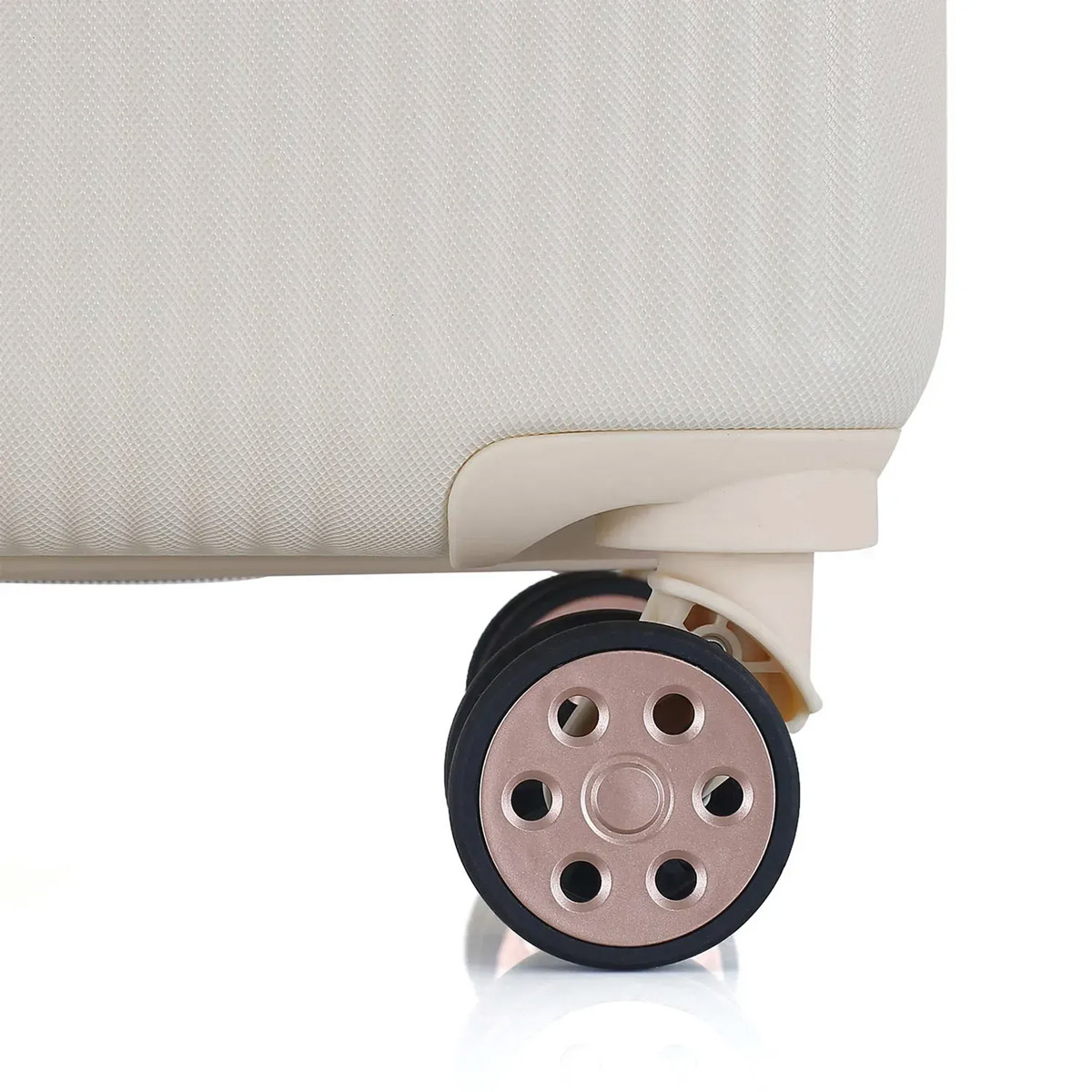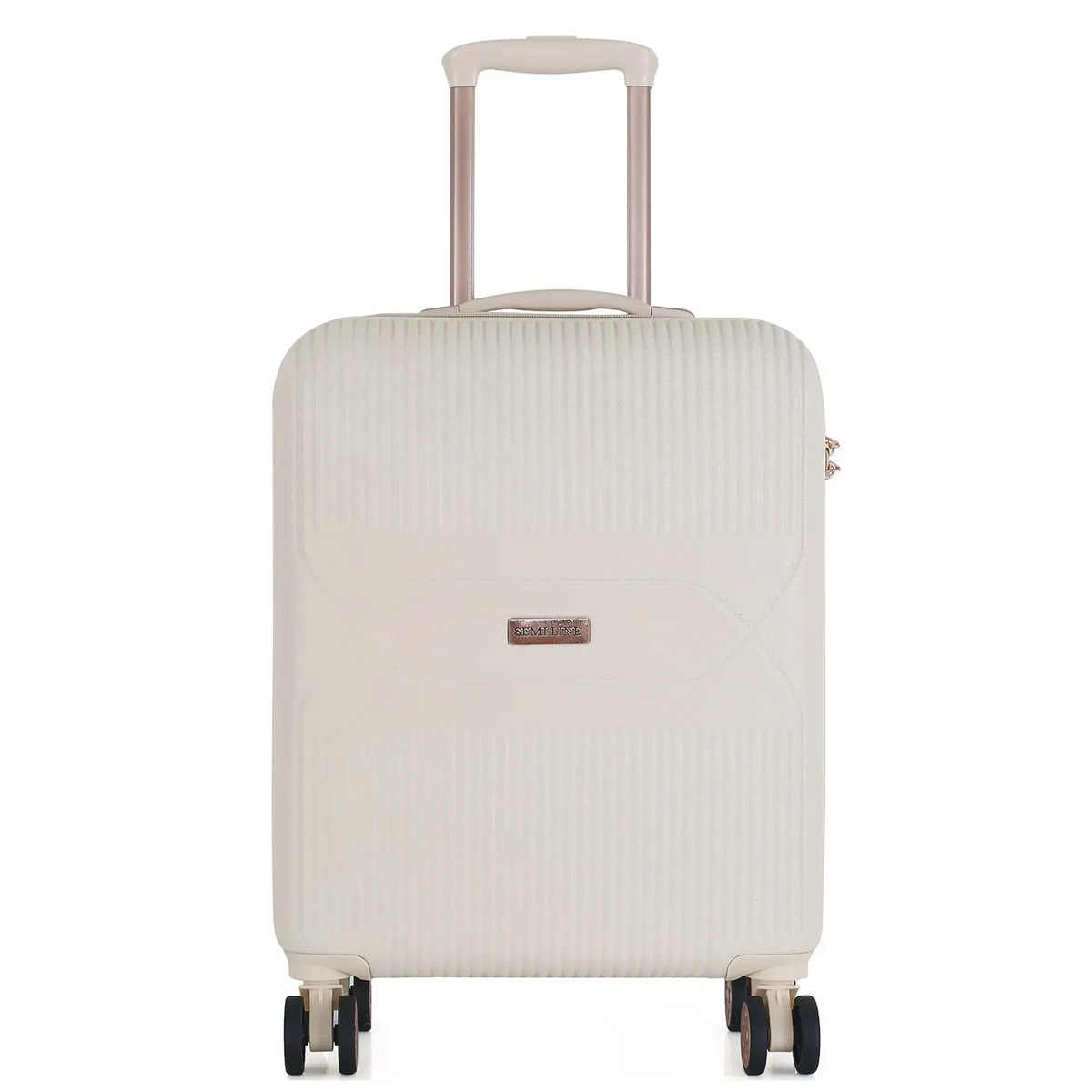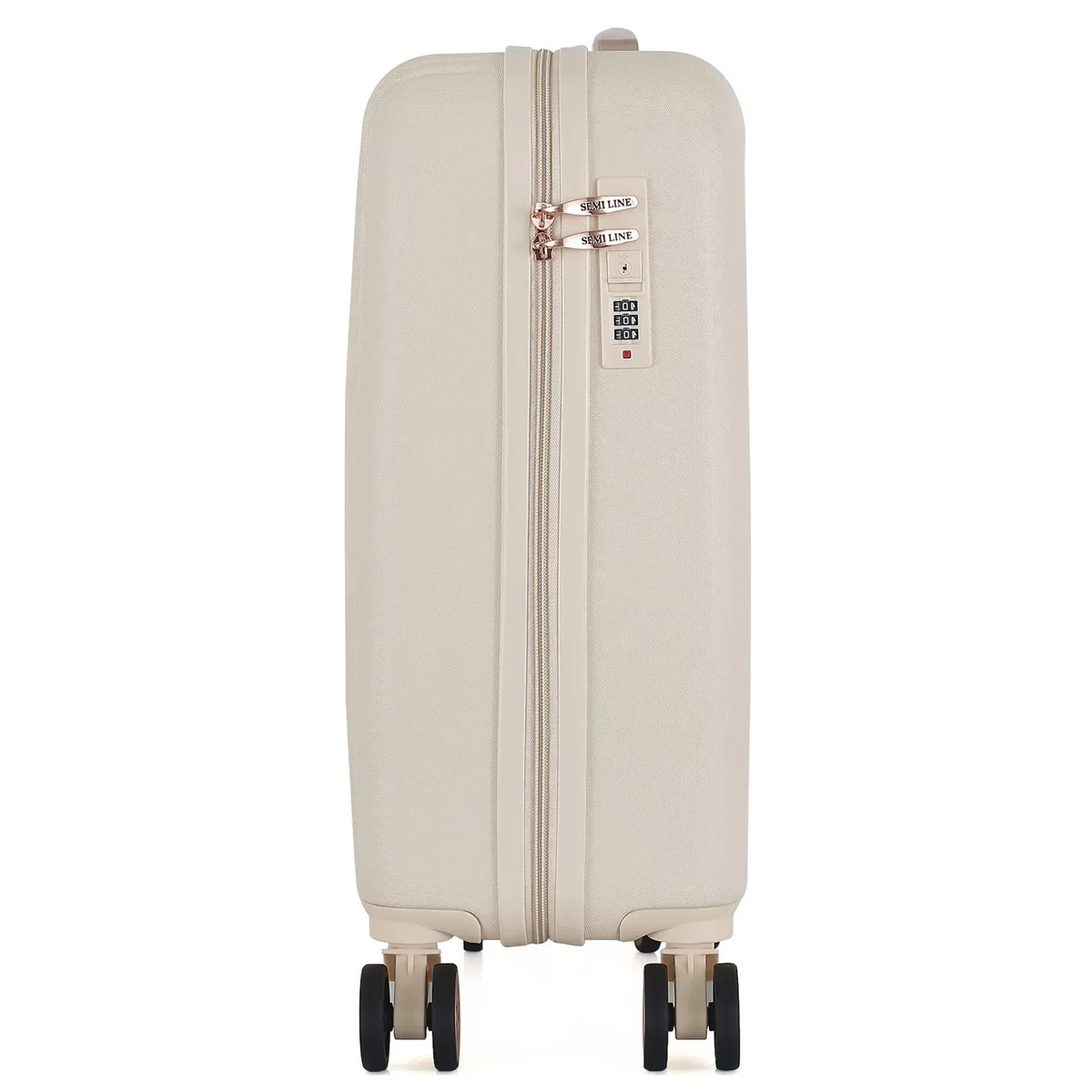 Валіза від Semi Line — компактна модель із закругленими кутами та мінімалістичним візерунком на фасаді. Оснащений легкою алюмінієвою телескопічною ручкою з фіксацією у двох положеннях та зручною переносною ручкою із пластику Soft-Touch. Вбудований "утоплений" кодовий замок захищає вміст і не виступає за межі корпусу, за винятком ризику пошкодження. Валіза відповідає вимогам більшості авіакомпаній для ручної поклажі.
