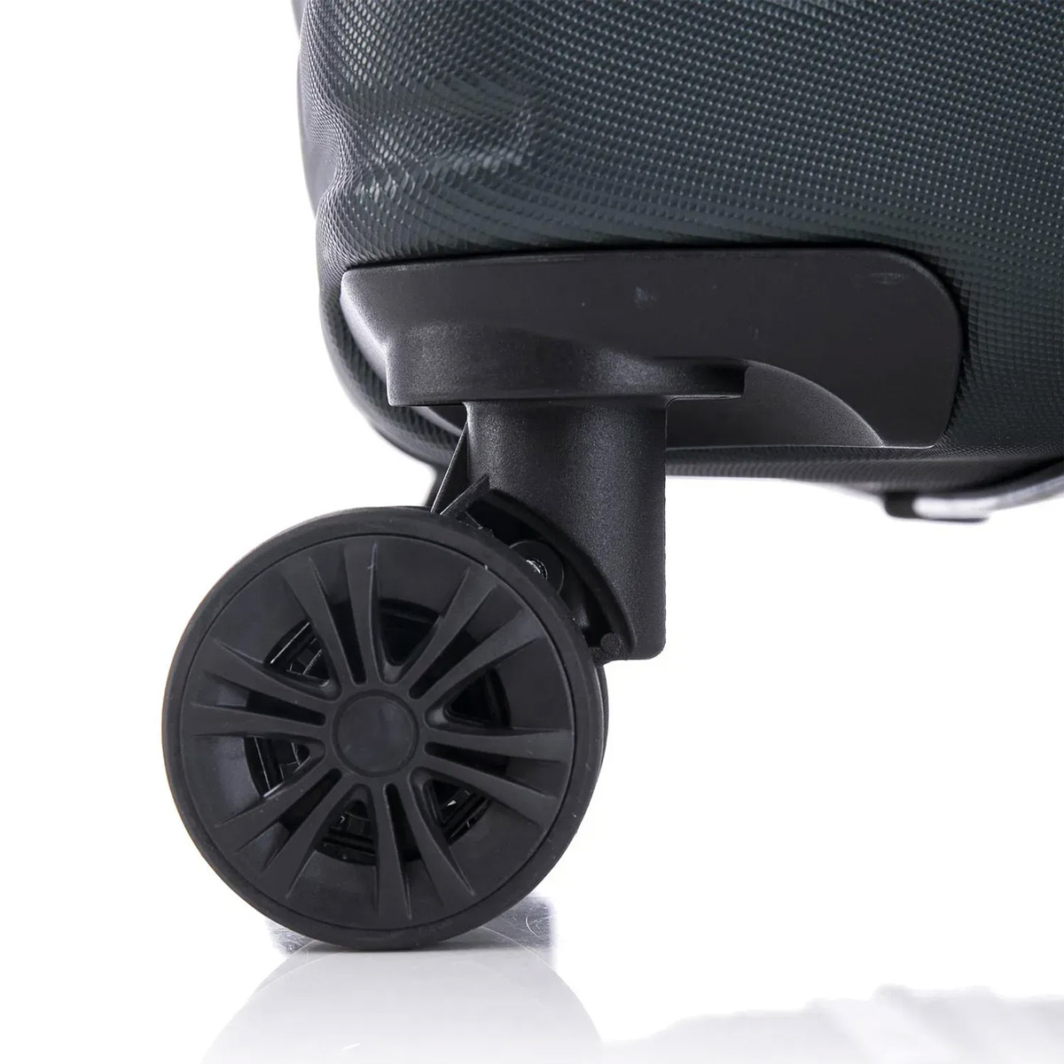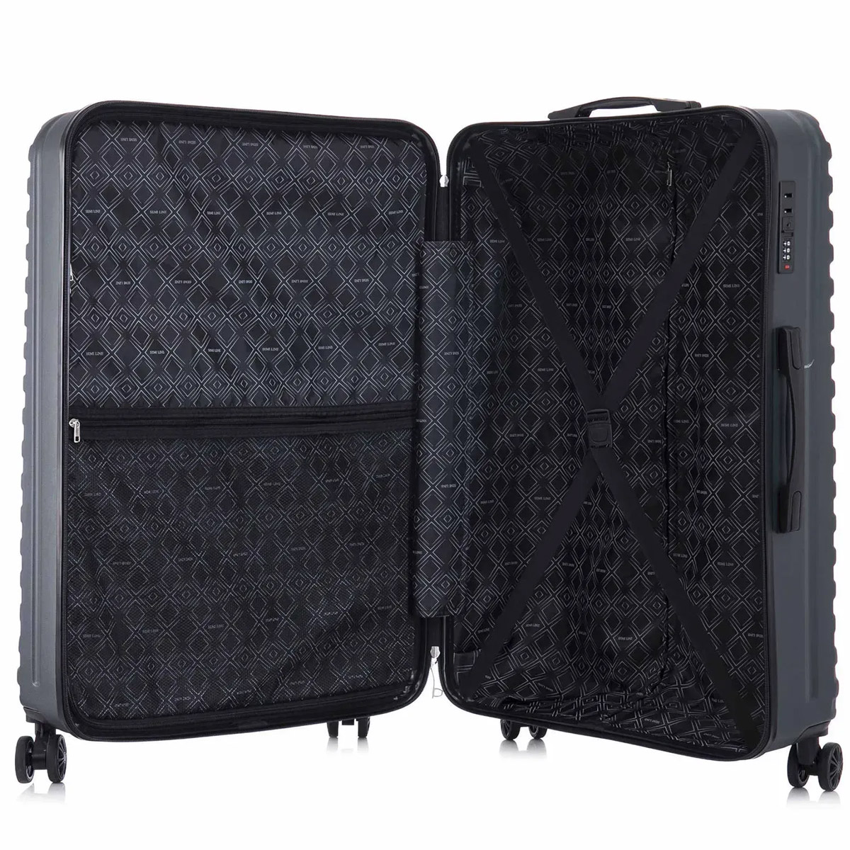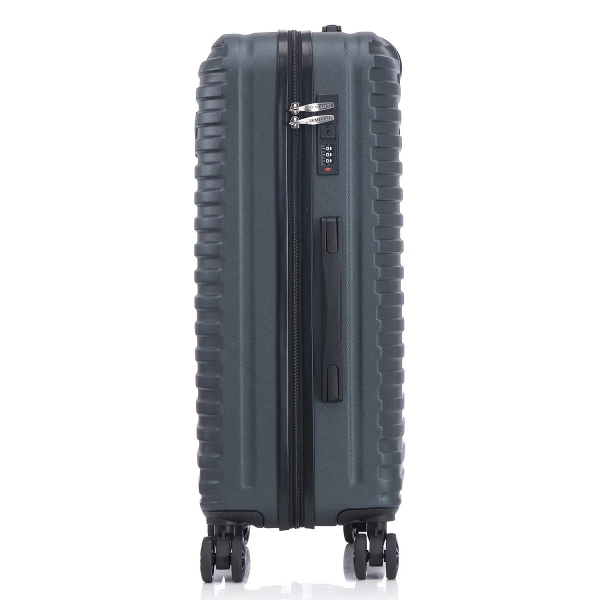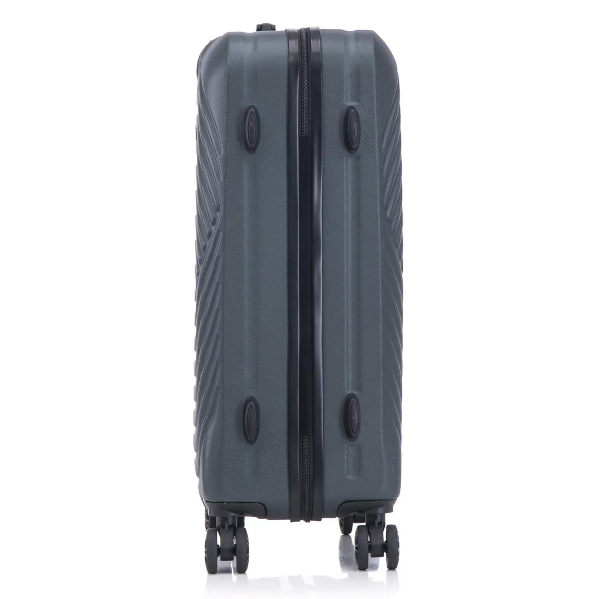 Валіза вирізняється стильним дизайном з перетином смуг, що створює ефект дорогої тканини. Модель оснащена «утопленим» кодовим замком, спареними повноповоротними колесами і належить до найлегших у своєму типорозмірі. Внутрішній простір розділений текстильною перегородкою на блискавці, доповнений кишенею для дрібниць. Валіза поєднує презентабельний зовнішній вигляд з практичністю та зручністю у використанні.