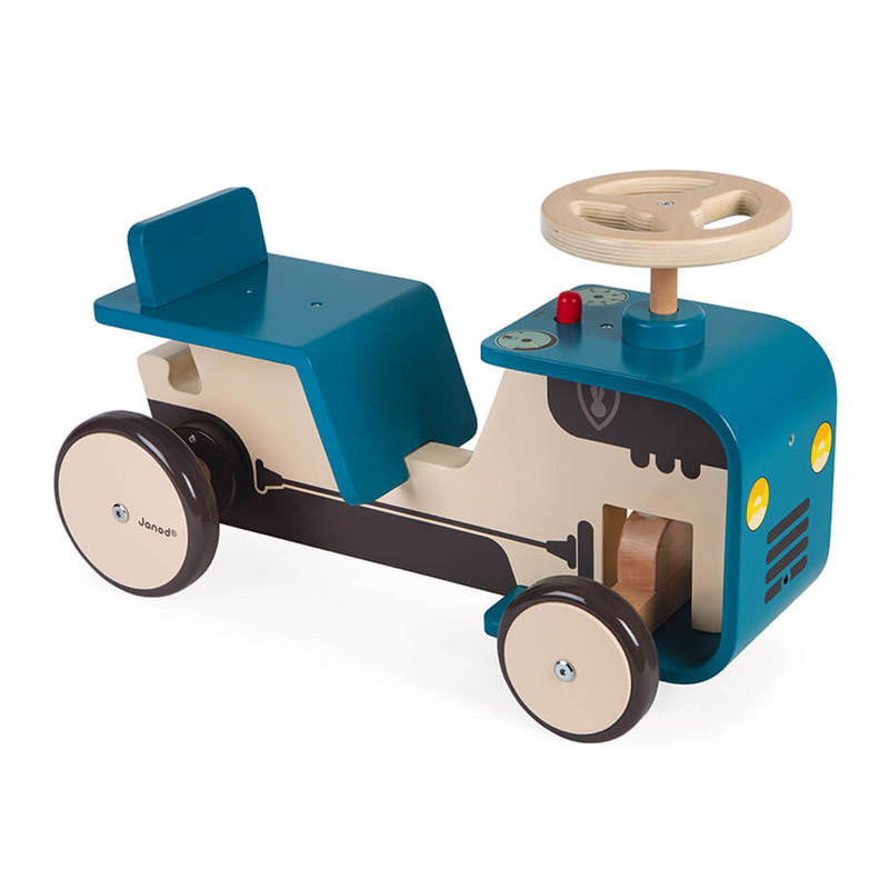 Цей дерев'яний трактор від Janod спеціально створений для розвитку моторики у дітей від 12 місяців. Він допоможе малюкам освоїти контроль рухів, досліджуючи навколишній світ. Вбудований гудок трактора попереджає про можливу небезпеку та повідомляє про прибуття малюка на ферму. Завдяки двом безшумним гумовим переднім колесам і функціональному керму, трактор впорається з будь-якими перешкодами в сільській місцевості. Janod - французький бренд, який створює унікальні іграшки та навчальні набори для дітей різного віку. Відомий своєю якістю та оригінальним дизайном, Janod пропонує широкий асортимент продуктів, що сприяють розвитку дітей у різних галузях, включно з моторикою, логікою та творчим мисленням. Бренд Janod користується популярністю завдяки своїй увазі до деталей, безпечності продукції та постійному прагненню до інновацій у сфері іграшкового виробництва.