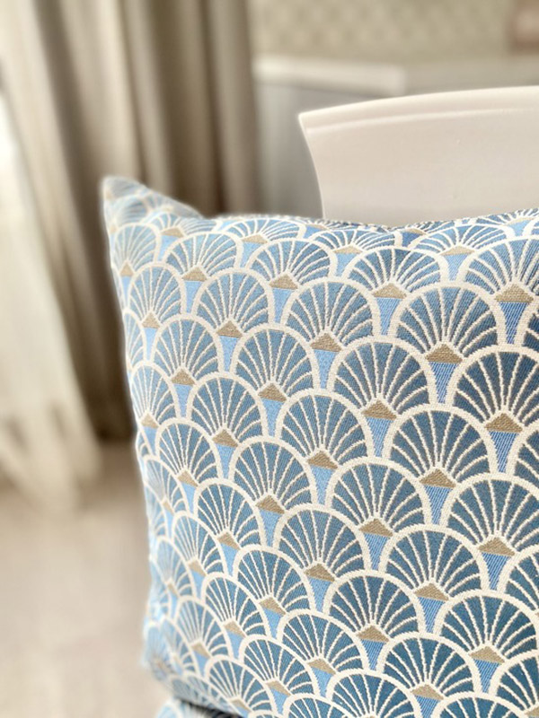 Двостороння наволочка з якісної щільної жакардової тканини. Наволочка блакитних відтінків з красивим графічним візерунком, стане стильним елементом декору для вашого дому, зробить кімнату більш затишною. Наволочка міцна і легка в догляді, практична і зручна у використанні, легко знімається і переться. Цікавий візерунок і приємне забарвлення роблять її універсальною для будь-якого інтер'єру.