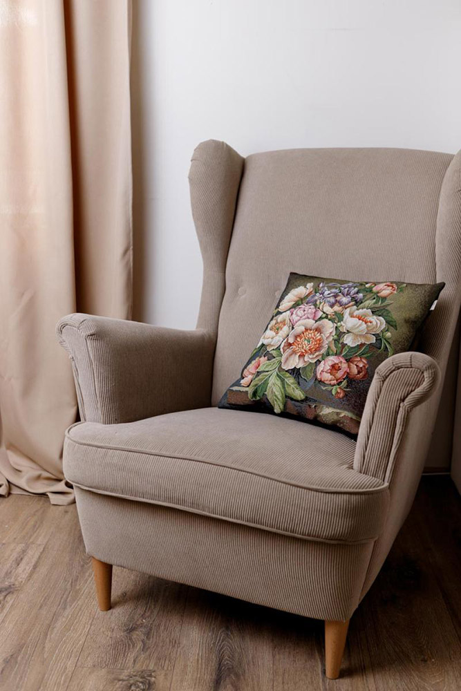 Декоративна наволочка з якісного іспанського гобелена на основі бавовни та поліестеру. Гарний квітковий малюнок наповнить дім затишком, подарує відчуття гармонії. Наволочка оснащена зручною застібкою-блискавкою.