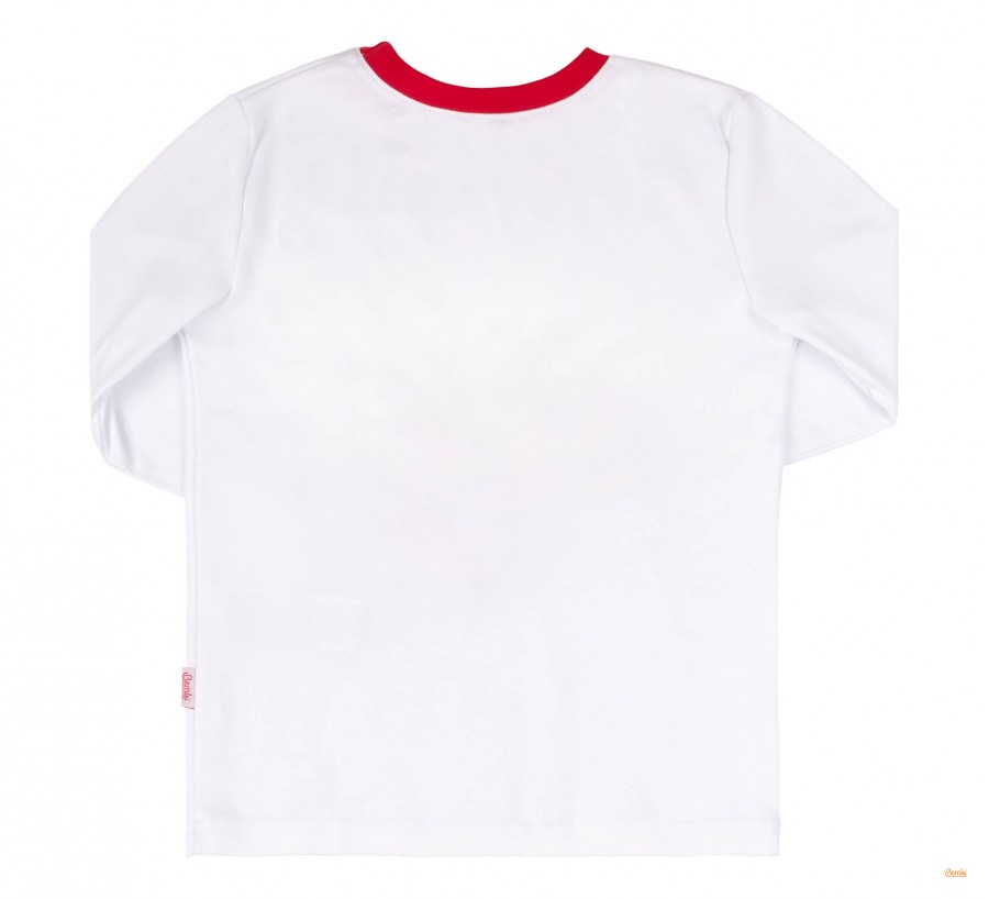 Піжама з інтерлоку для хлопчика Бембі ПЖ53 біла з червоним. Піжама універсальна - лонгслів зі штанами. Стильні та яскраві принти. Піжама та штани мають манжети з основного матеріалу. Штани на еластичній резинці.