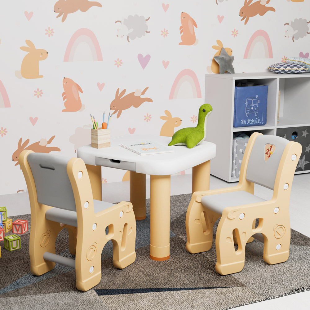 Комплект стіл та два стільці від Mealux – зручне рішення для спільних ігор. Висувні органайзери з боків допоможуть зберігати канцелярію під рукою. Закруглені кути забезпечують безпеку малюків. Гумові накладки на ніжках захищають підлогу та забезпечують стійкість.