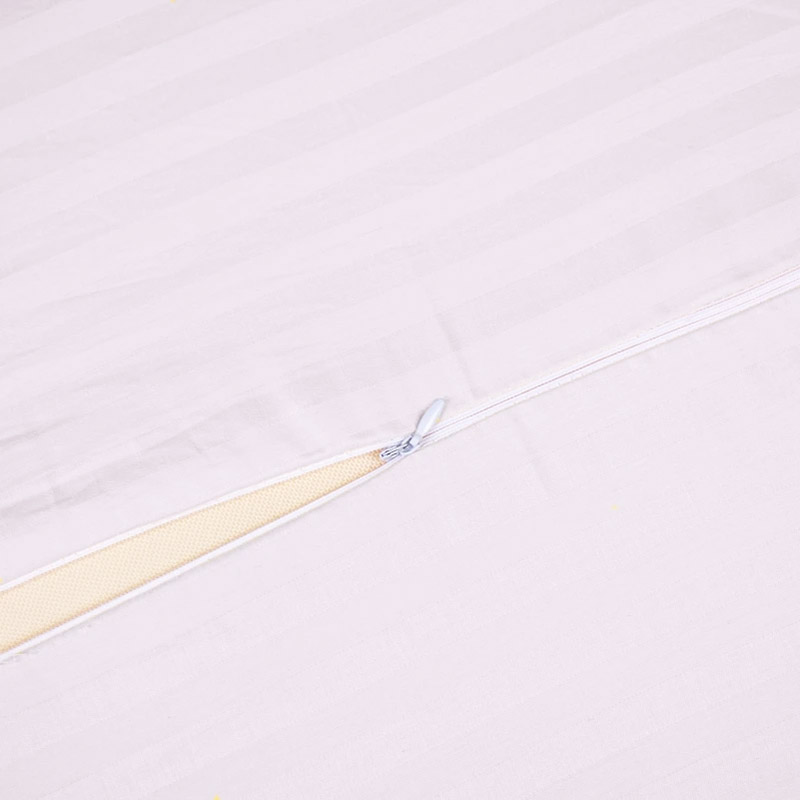 Чохол-наволочка для ортопедичних подушок. Наволочка виготовлена з високоякісного страйп-сатину білого кольору з красивими жакардовими смужками. Тканина ніжна, гладка і шовковиста, виготовляється зі 100% бавовни, має елегантний і красивий вигляд, забезпечує затишок і комфорт, практична і довговічна в експлуатації. Наволочка оснащена зручною застібкою-блискавкою.