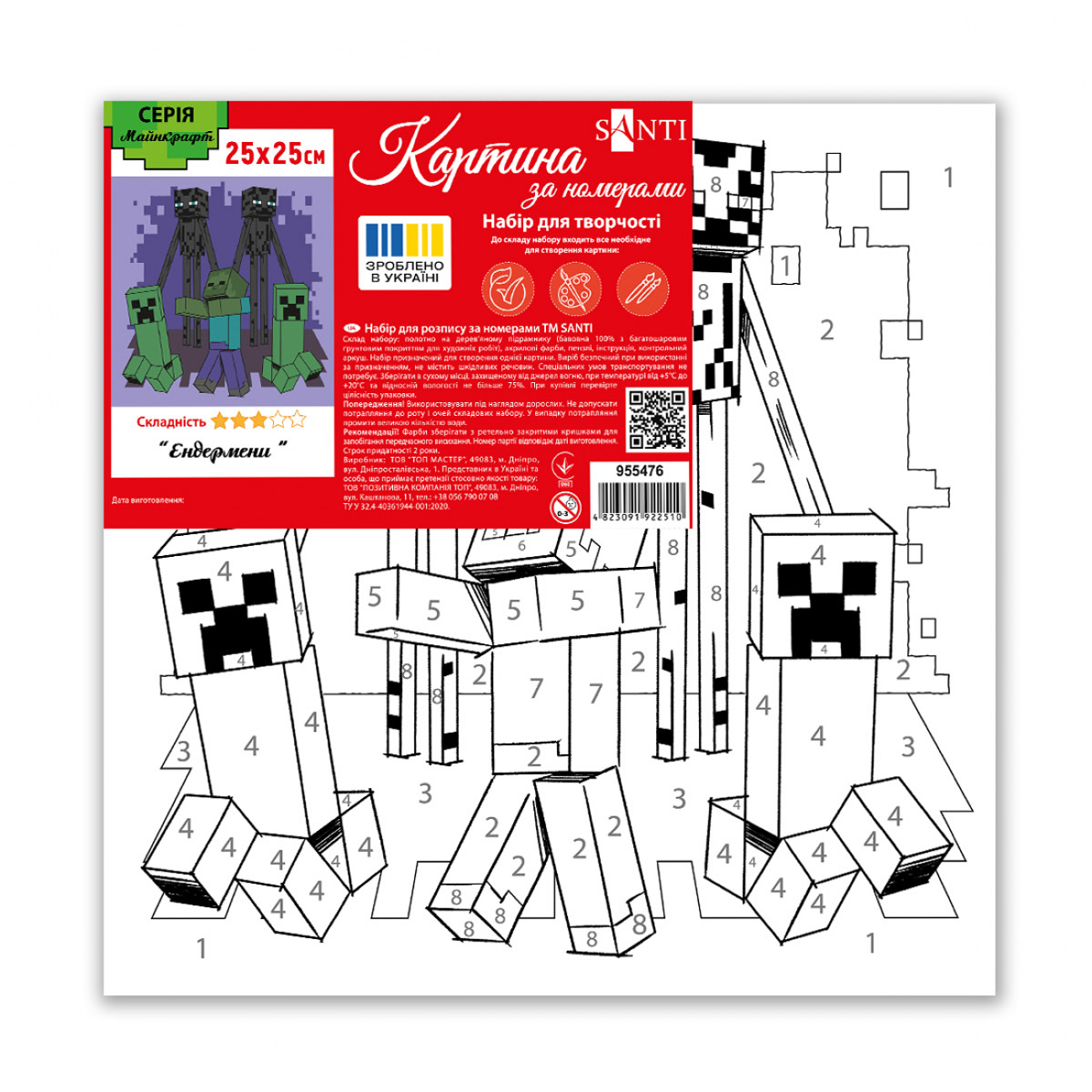 Картина за номерами 25х25 см Майнкрафт Ендермени Santi 955476.