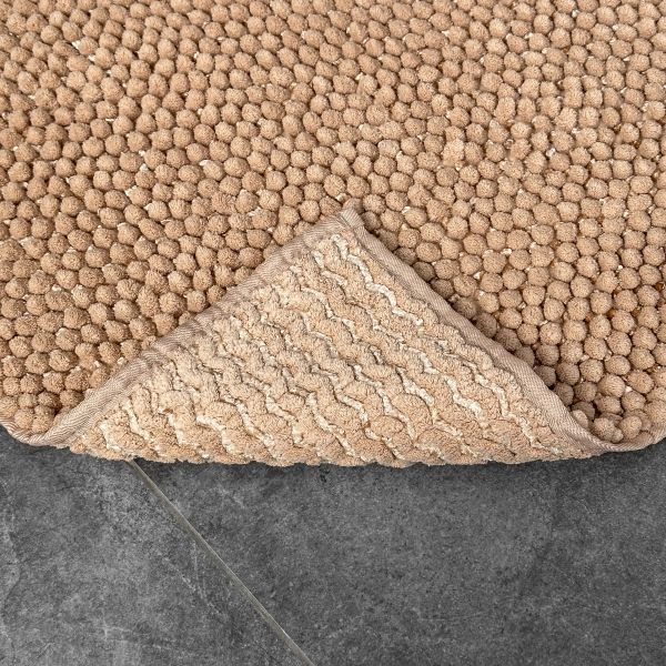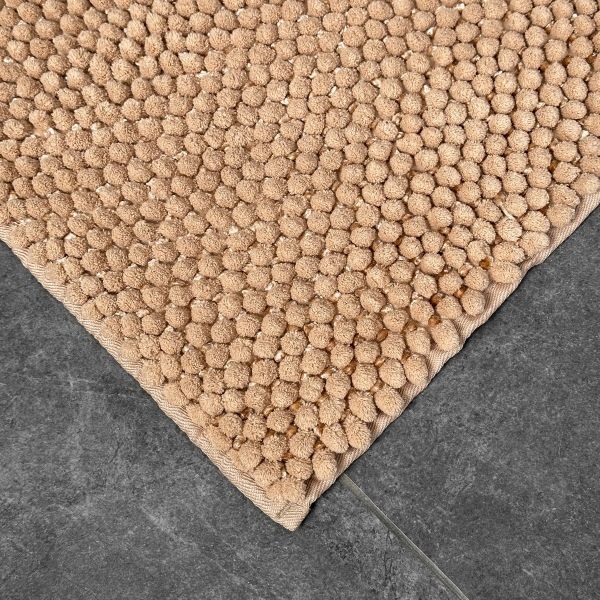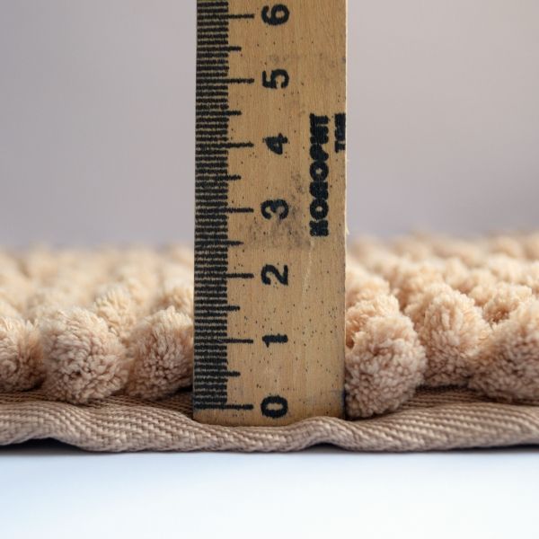 Килимок для ванної кімнати DarianA «Ананас» (55х80 см, 0,66 кг) з ворсом 23 мм із поліестеру (шеніл+люрекс 1500 г/м?) поєднує м’якість і вишуканий блиск. Основа з термоеластопласту SEBS гарантує надійну протиковзку фіксацію, а бейка в колір захищає краї від зношування. Карамельний відтінок освіжить будь-який інтер’єр ванної, створюючи атмосферу затишку. Ідеальний для щоденного використання — захищає підлогу від вологи та дарує комфорт з першого кроку. Важко уявити санвузол без м'якого, теплого килимка. Він забезпечує комфорт та комфорт у цьому приміщенні. Так, килимки для ванної кімнати DarianA з товстим ворсом підвищать якість життя свого власника. Оскільки килимки у ванній не тільки захищають ноги від холодної статі, а й вбирають вологу, бризки з душу чи раковини. Такі вироби характеризуються такими перевагами: