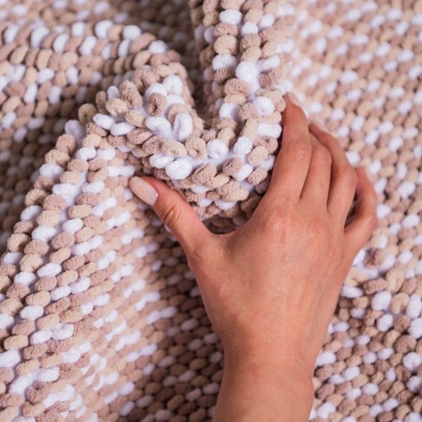 Килимок для ванної Махрамат Мелоді DarianA бежевого кольору розміром 55х80 см — це поєднання м’якості, зручності та естетики. Ворс висотою 20 мм з 100% поліестеру приємний на дотик та швидко сохне. Основа з розпиленого латексу запобігає ковзанню на вологій підлозі. Акуратна обробка бейкою в тон додає виробу завершеного вигляду й підвищує його зносостійкість.