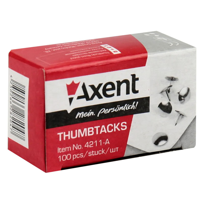 Кнопки нікельовані 100 шт Axent 4211-A призначені для фіксації інформації на пористої поверхні, перш за все пробкових або тканинних дощок. Кнопки срібного кольору, мають круглу капелюшок. Гострота і міцність стрижня кнопки забезпечують легку надійну фіксацію.