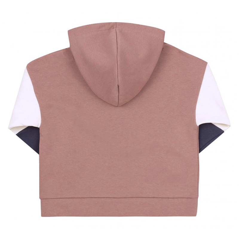 Трикотажне комбіноване худі коричневого кольору, спереду анімалістичний принт. Модель з капюшоном і довгими рукавами, виконана з тканини трикотаж-шардон. Матеріал приємний і комфортний, практичний, ідеально підійде на прохолодну пору року. Манжети виконані з качкорси.
