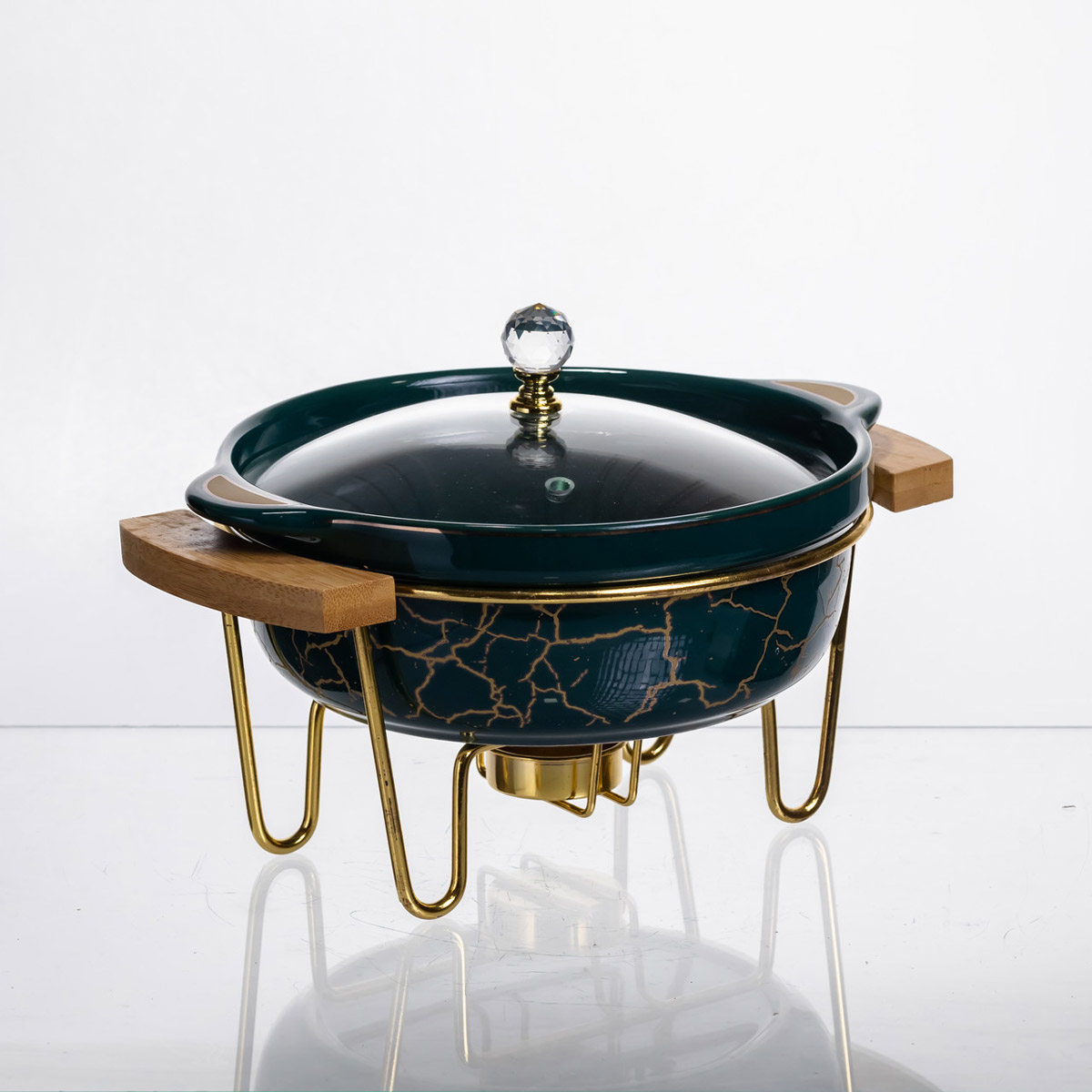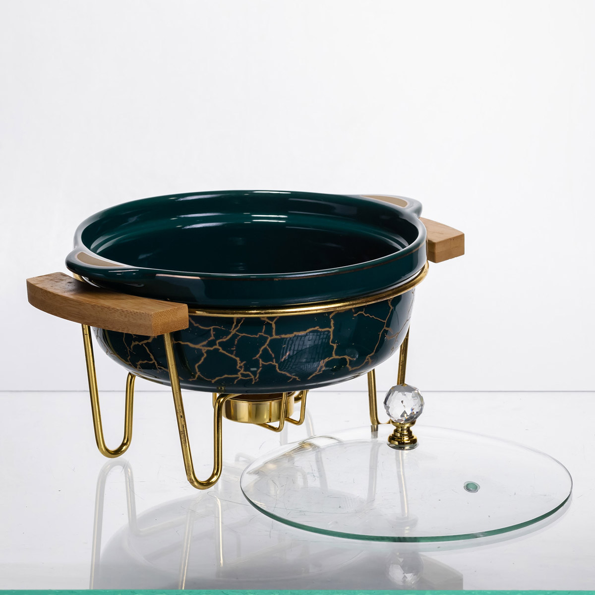 Порцелянова мармітниця з елегантним покриттям «зелений мармур», яка зберігає тепло та аромат страв. Кругла форма зручна для подачі супів, гарнірів та гарячих страв. Скляна кришка дозволяє контролювати вміст, а стильний дизайн робить марміт прикрасою будь-якого сервірування. Відмінний вибір для дому та святкових заходів.