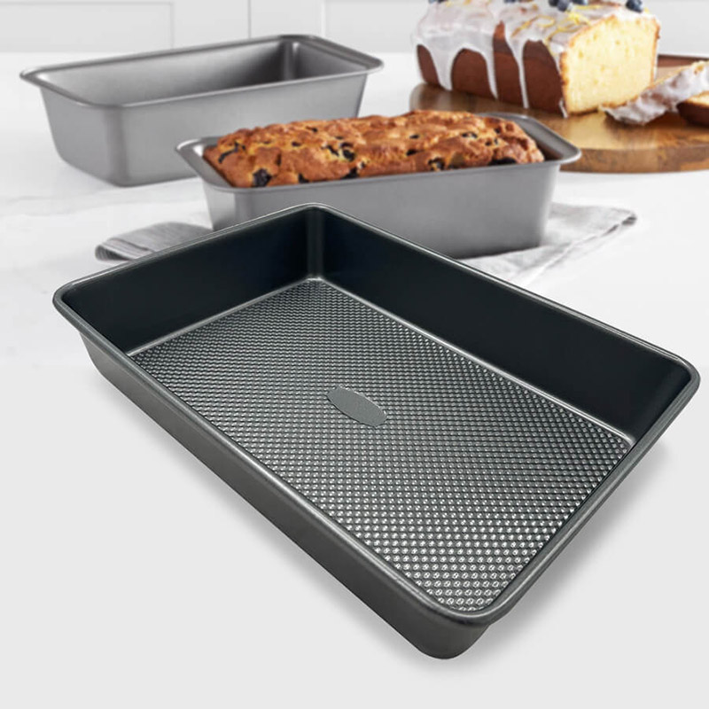 Прямокутна форма для випікання, зручна і практична, виготовлена з міцної вуглецевої сталі, забезпечує рівномірне прогрівання і відмінні результати приготування.