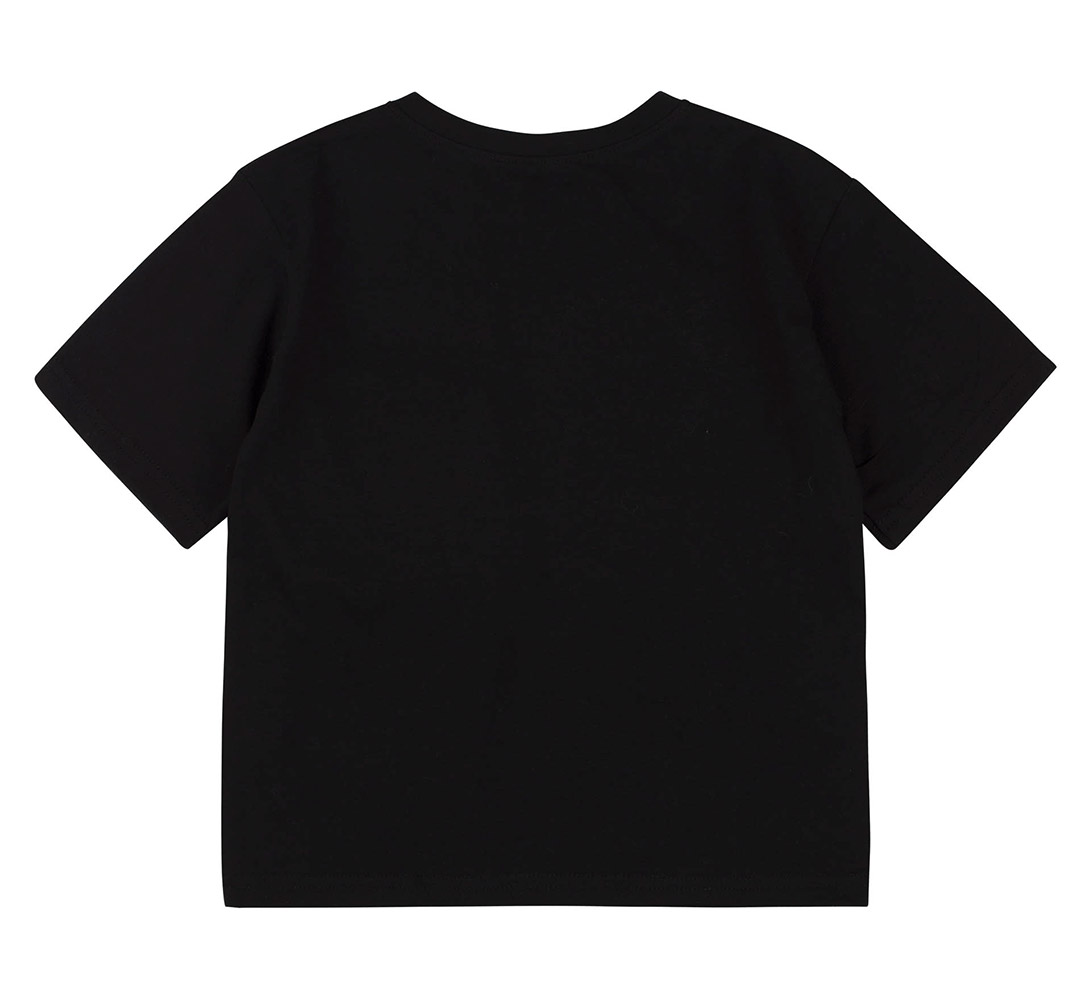 Футболка чорного кольору з контрастною синьою кишенею з клапаном. Модель підійде для хлопчика. Футболка прямого крою, з короткими рукавами та круглою горловиною. Футболка виконана з тканини супрем. Бавовняний матеріал легкий, м'який і приємний на дотик, добре пропускає повітря, ідеально підходить для дитячої шкіри.