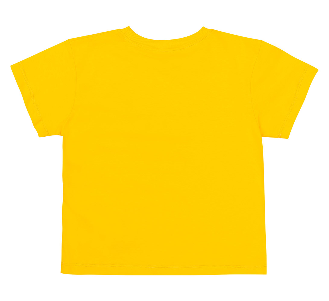 Футболка жовтого кольору з принтом спереду. Модель підійде для хлопчика. Футболка прямого крою, з круглою горловиною та з короткими рукавами. Футболка виконана з тканини супрем. Бавовняний матеріал легкий, м'який і приємний на дотик, добре пропускає повітря, ідеально підходить для дитячої шкіри.