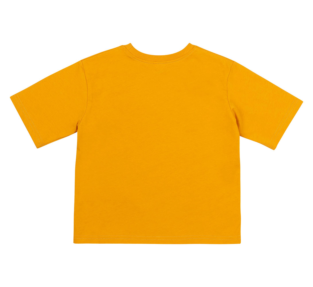 Однотонна футболка кольору охри, спереду кишенька. Модель підійде для хлопчика. Футболка прямого крою, з круглою горловиною та з короткими рукавами. Футболка виконана з тканини супрем. Бавовняний матеріал легкий, м'який і приємний на дотик, добре пропускає повітря, ідеально підходить для дитячої шкіри.