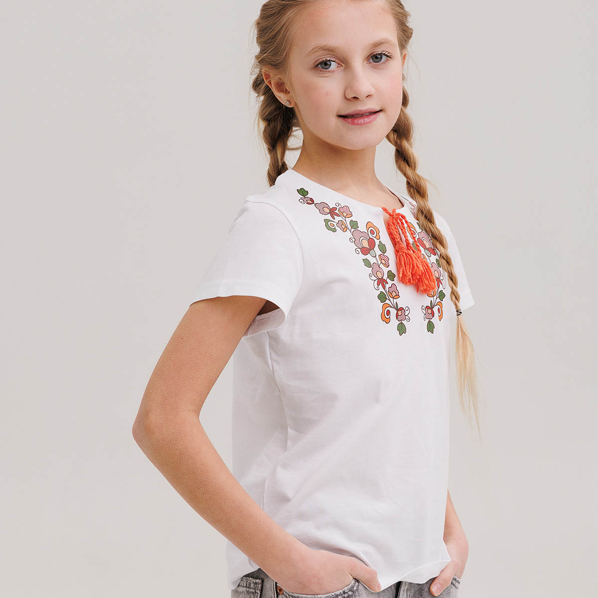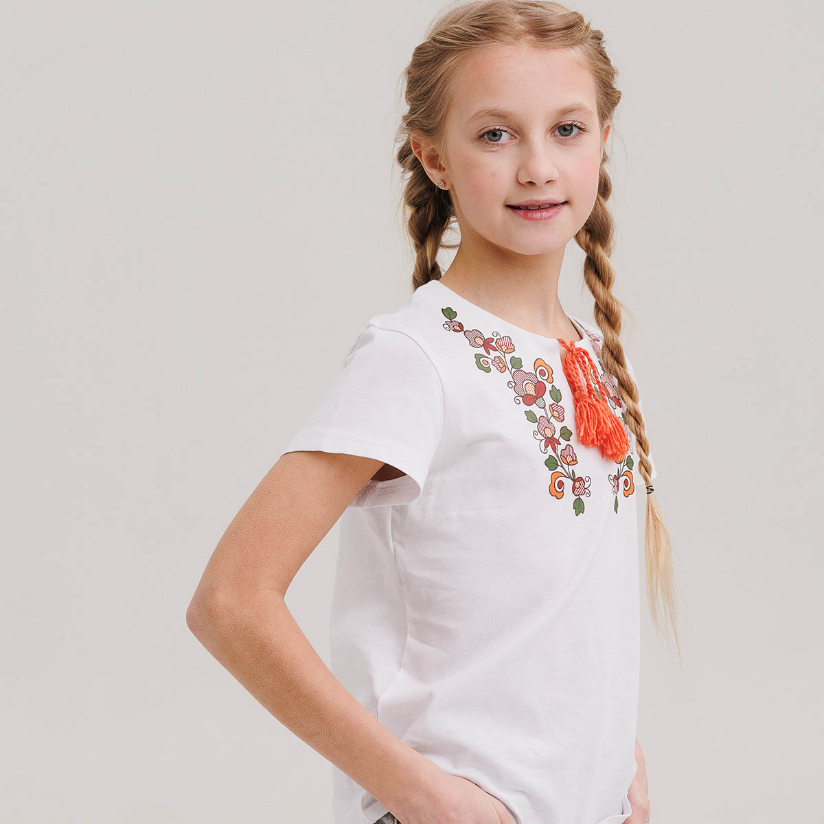 Футболка в етно стилі для дівчаток Бембі ФБ962 біла