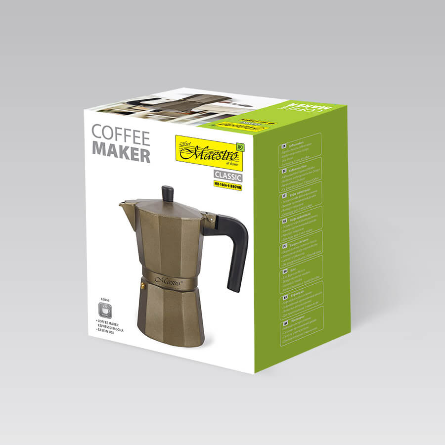 Сучасна гейзерна кавоварка для еспресо/мокко 450мол Maestro MR1666-9-BROWN.