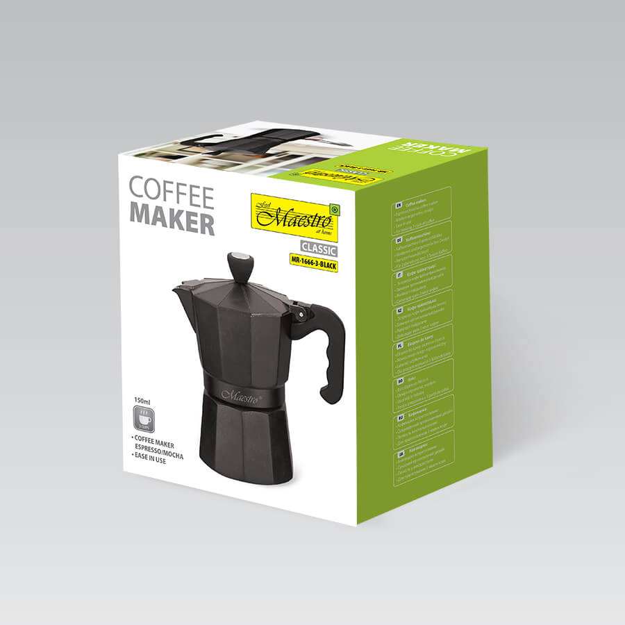 Кавоварка гейзерна Maestro Rainbow 150 мл MR1666-3 стане незамінною помічницею для приготування улюбленого напою. Виконана з високоякісного алюмінію, має зручну ручку, яка не нагрівається. Кавоварка складається з двох ємностей, розділених спеціальним фільтром. Готувати улюблену каву в гейзерній кавоварці - одне задоволення. Підходить для всіх джерел тепла, крім індукційних. Рекомендоване ручне миття. Ви легко і швидко заварите ароматну каву з пінкою для найближчих серцю людей! Торгова марка Maestro включає в себе широкий асортимент посуду і дрібних побутових приладів для кухні, кухонні набори та аксесуари. Вибираючи посуд Maestro - Ви обираєте затишок і комфорт на Вашій кухні. Ця продукція вирізняється оригінальним і сучасним дизайном. Цінова політика демократична. Вся продукція сертифікована, виготовляється виключно з безпечних матеріалів.