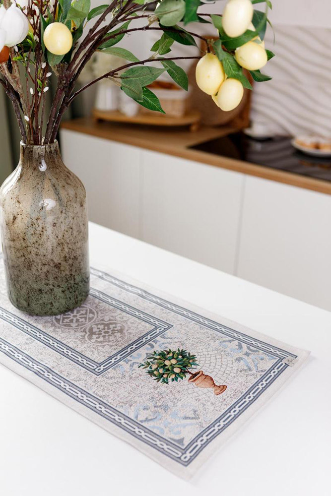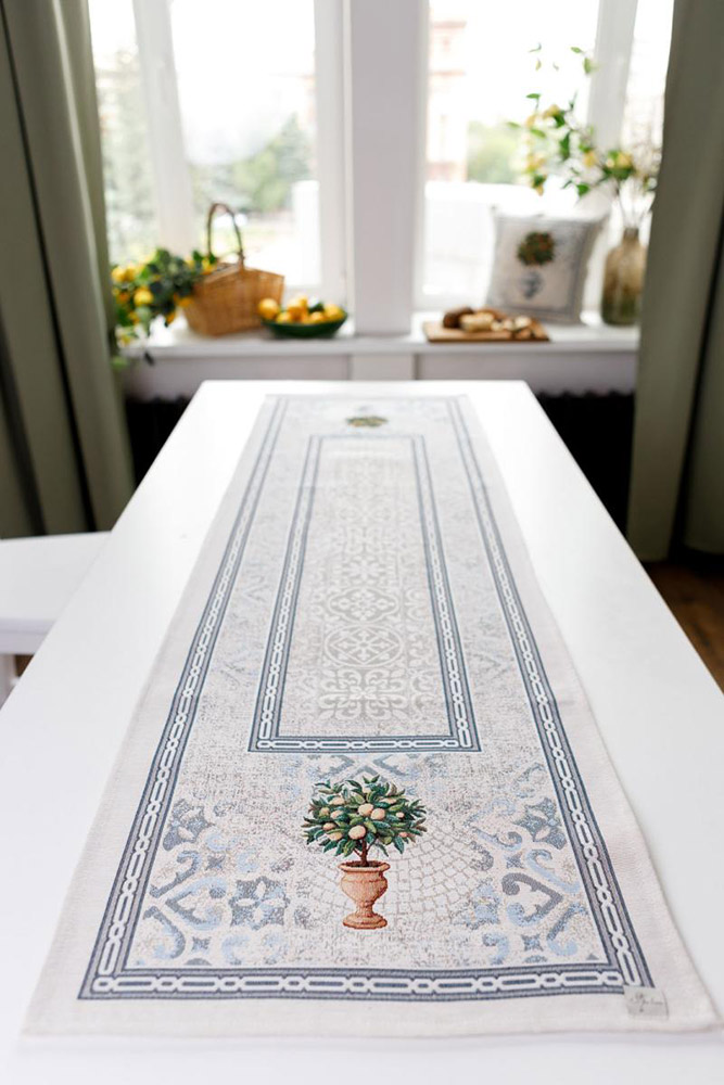 Гобеленова доріжка з рослиною і красивими візерунками стане родзинкою столу, зробить інтер'єр більш затишним. Високоякісна іспанська тканина на основі бавовни та поліестеру прослужить тривалий час, зберігши привабливий зовнішній вигляд.