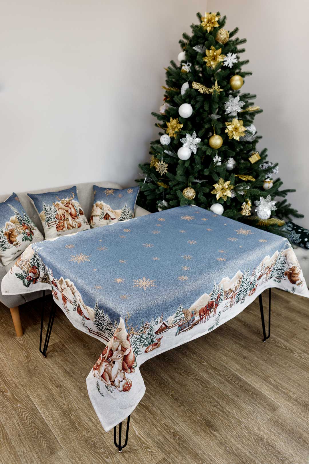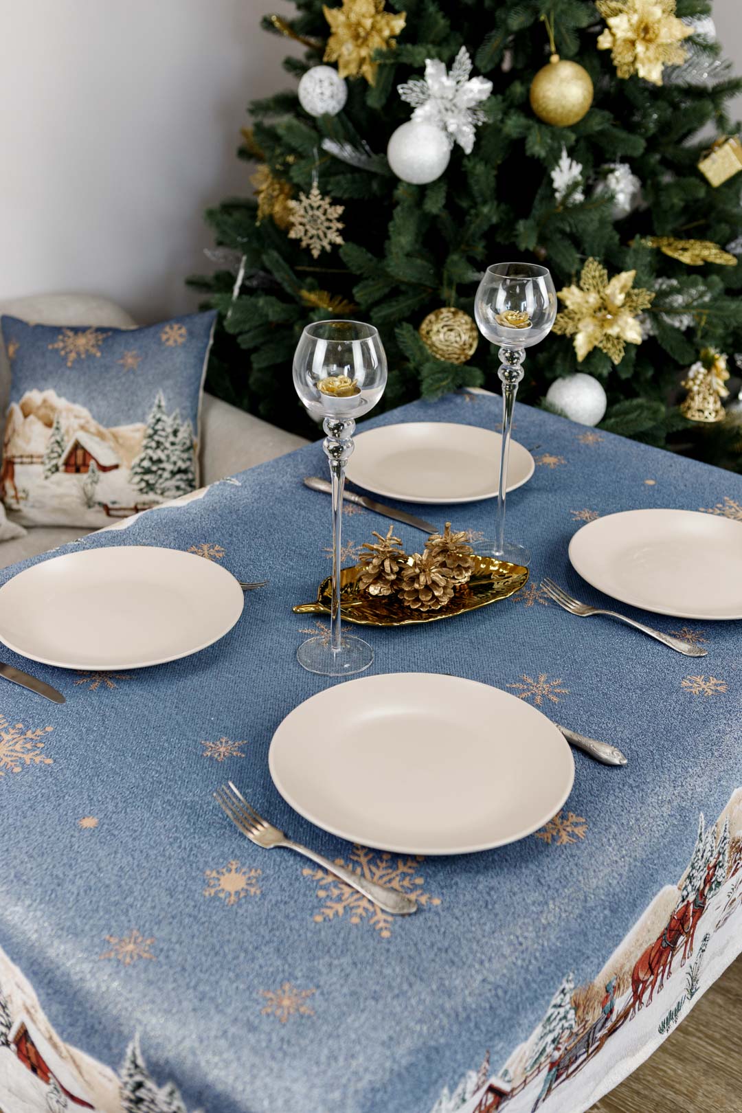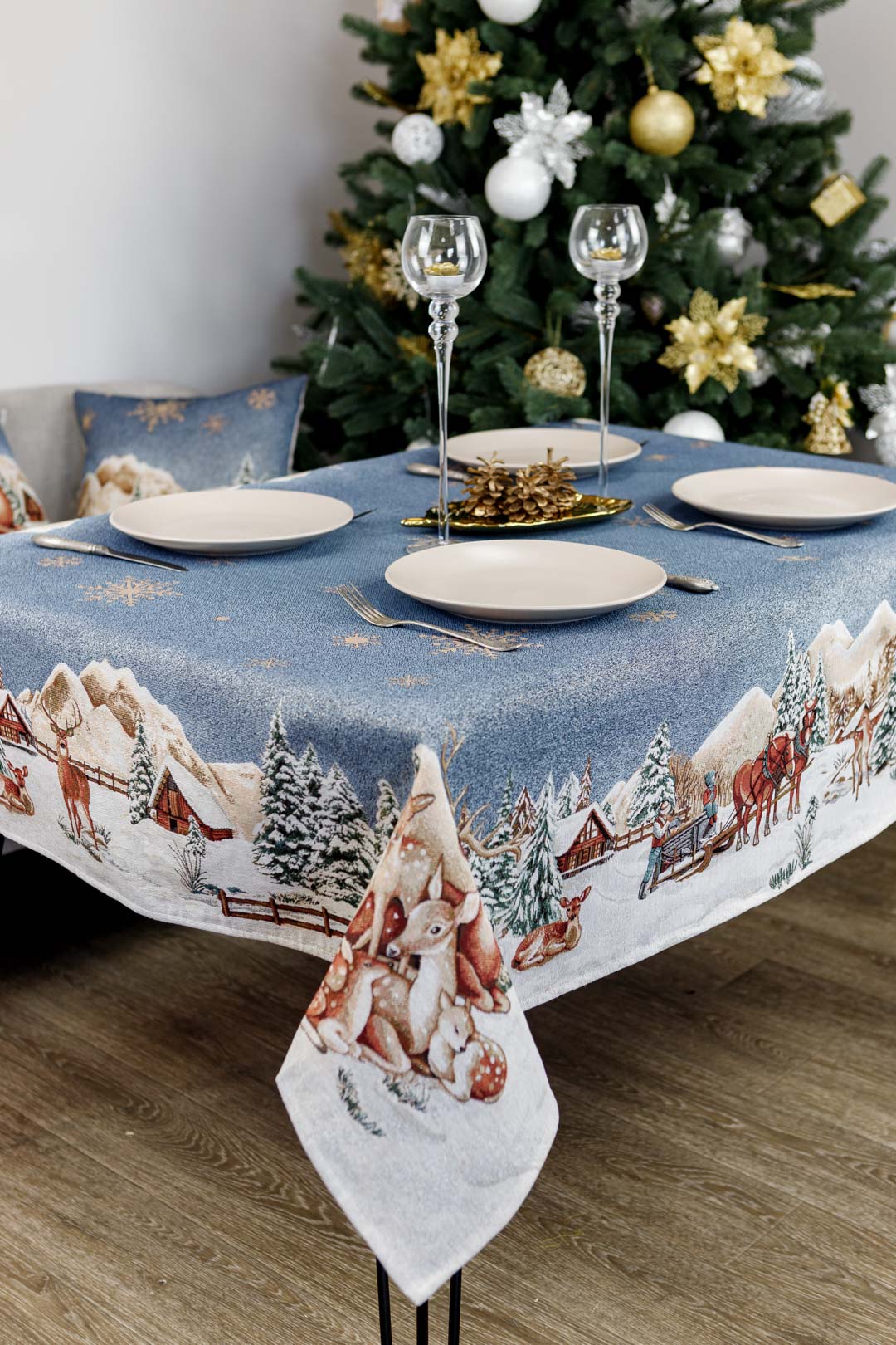 Скатертина гобеленова Блакитне сяйво Прованс - це неймовірно барвистий і яскравий аксесуар перетворить ваш обідній стіл на справжній витвір мистецтва, створюючи неповторну атмосферу чарівництва та радості. Її унікальний дизайн є ідеальним поєднанням традицій новорічної магії та елегантності блакитного кольору. Міцні матеріали гарантують тривалий термін служби. Вона підходить для використання як усередині приміщення, так і на відкритому повітрі, роблячи ваш святковий стіл затишним та зручним. Подаруйте вашому столу чари та святковий настрій з унікальною гобеленовою новорічною скатертиною від ТМ Прованс!