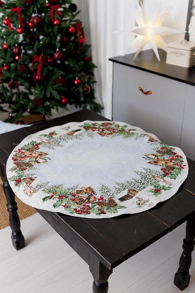 Скатертина новорічна гобеленова кругла Squirrel Прованс