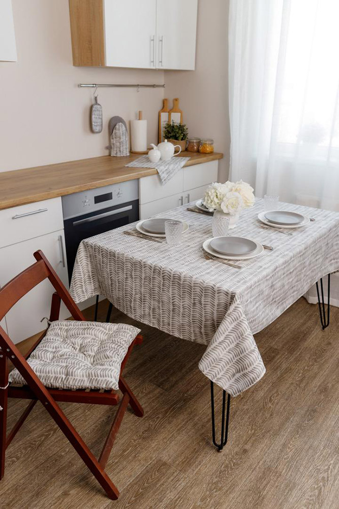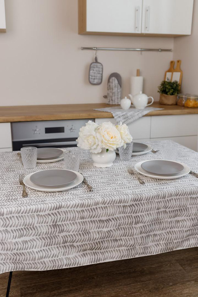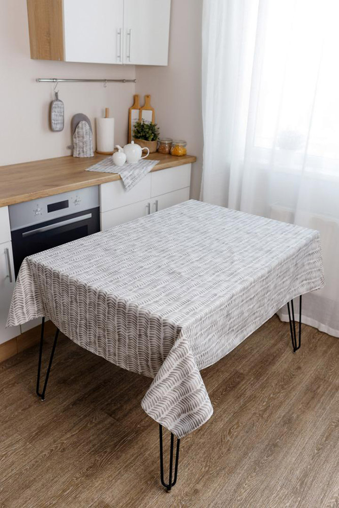 Скатертина з колекції "Раф". Скатертина сірих відтінків з красивим принтом, чудово доповнить сервірування столу, стане стильним акцентом в інтер'єрі. Якісна тканина з натуральної бавовни прослужить вам довгий час, зберігши первісний колір і вигляд.