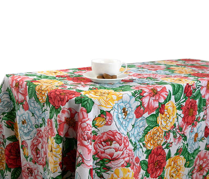 Практична скатертина з різнобарвним квітковим принтом. Скатертина стане красивим і яскравим акцентом в інтер'єрі. Скатертина виконана з натурального бавовняного матеріалу, надовго зберігає первинний зовнішній вигляд.