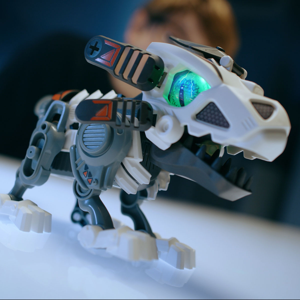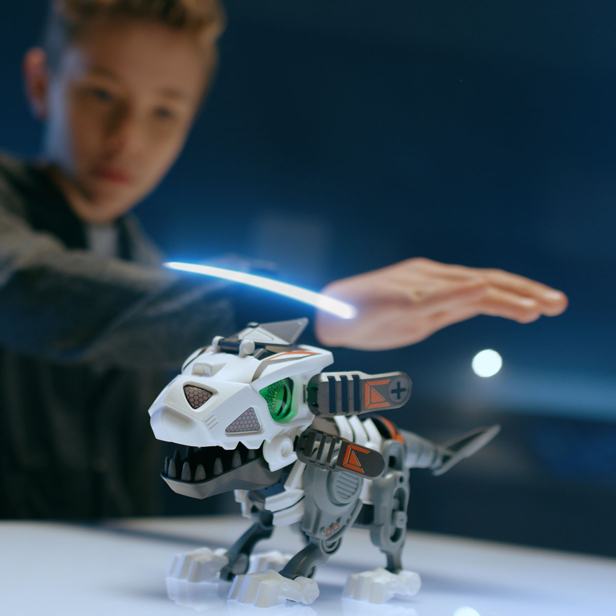 Робозавр відкриває пащу і видає гарчання, коли його ефектні очі загоряються! Для роботи Dino вам знадобляться дві батарейки AAA.
