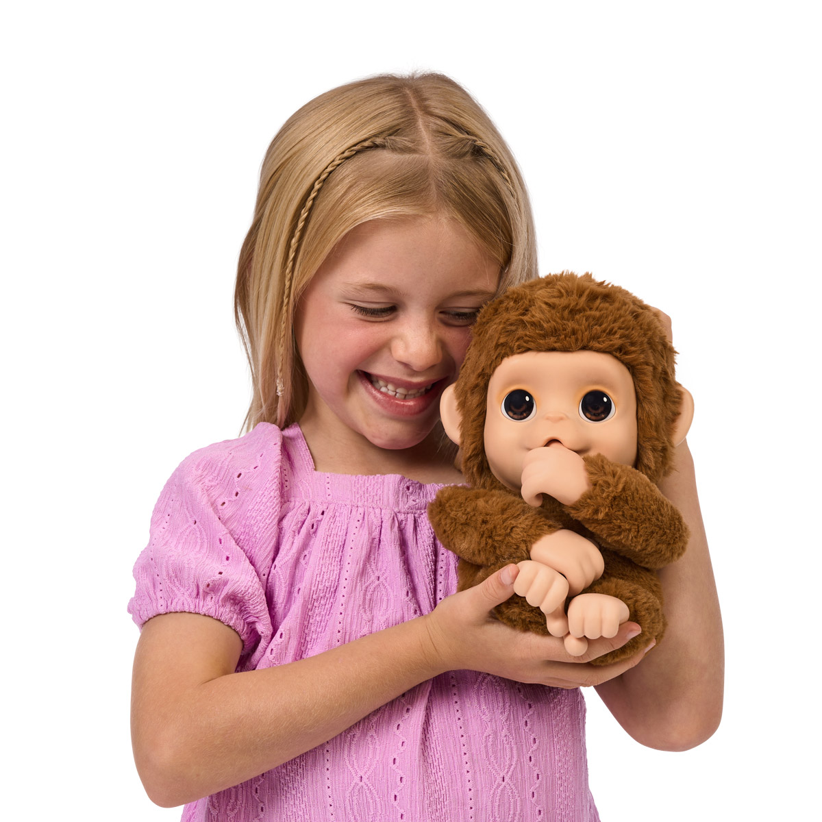Милый и забавный обезьянка подарит вашему ребенку множество радостных моментов! Играйте с ним, кормите, и он ответит более чем 50 звуками и реакциями. Мягкий мех делает его особенно приятным для объятий. Подпишите свидетельство об усыновлении и станьте его лучшим другом! Обезьянка может цепляться за вещи, сосать палец, хихикать от щекотки и даже напевать колыбельную.