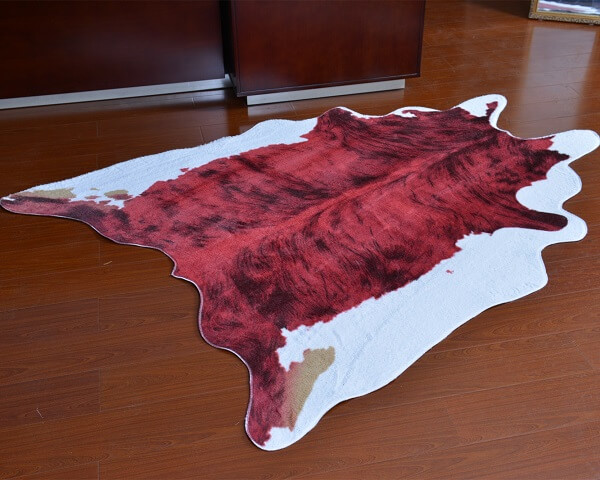 Килим зі штучної шкіри Корова 4мм Homytex бордовий. Фігурний килимок у вигляді шкури корови для надання вашому інтер'єру нового вигляду. Низ зі штучної м'якої шкіри (не ковзає), верх - м'який і ніжний вельвет. Сам килим не об'ємний, він не важкий і не товстий, товщина шкури зі штучної шкіри 4 мм. Догляд пилосос, вологе прибирання або хімчистка, все залежить від ступеня забруднення.