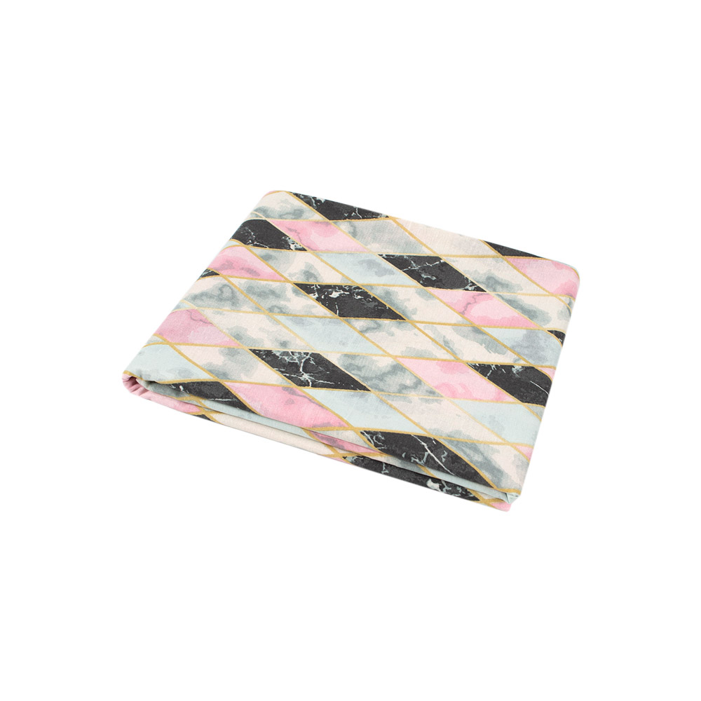 Простирадло з ранфорса з модним геометричним принтом із різнокольоровими ромбами. Модель із гумкою по периметру. Якісна тканина з натуральної бавовни приємна на дотик, добре пропускає повітря, дарує комфортний сон. Простирадло легко одягається на матрац і надійно фіксується за допомогою гумки, не сповзає під час експлуатації.