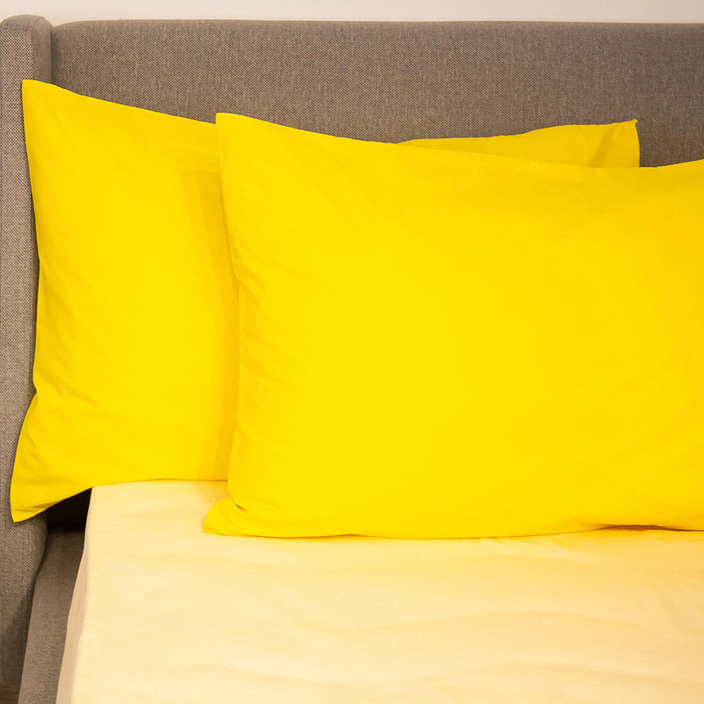 Набір з двох однотонних наволочок жовтого кольору, виконаних з м'якого і міцного ранфорса. Натуральна бавовняна тканина приємна на дотик, вирізняється хорошою повітропроникністю, відмінно зберігає колір і форму після прання. Наволочки представлені в зручній і стильній упаковці-скрутці - практичне рішення для зберігання і транспортування.