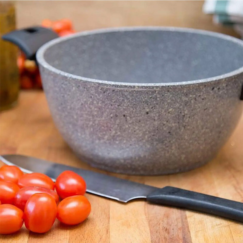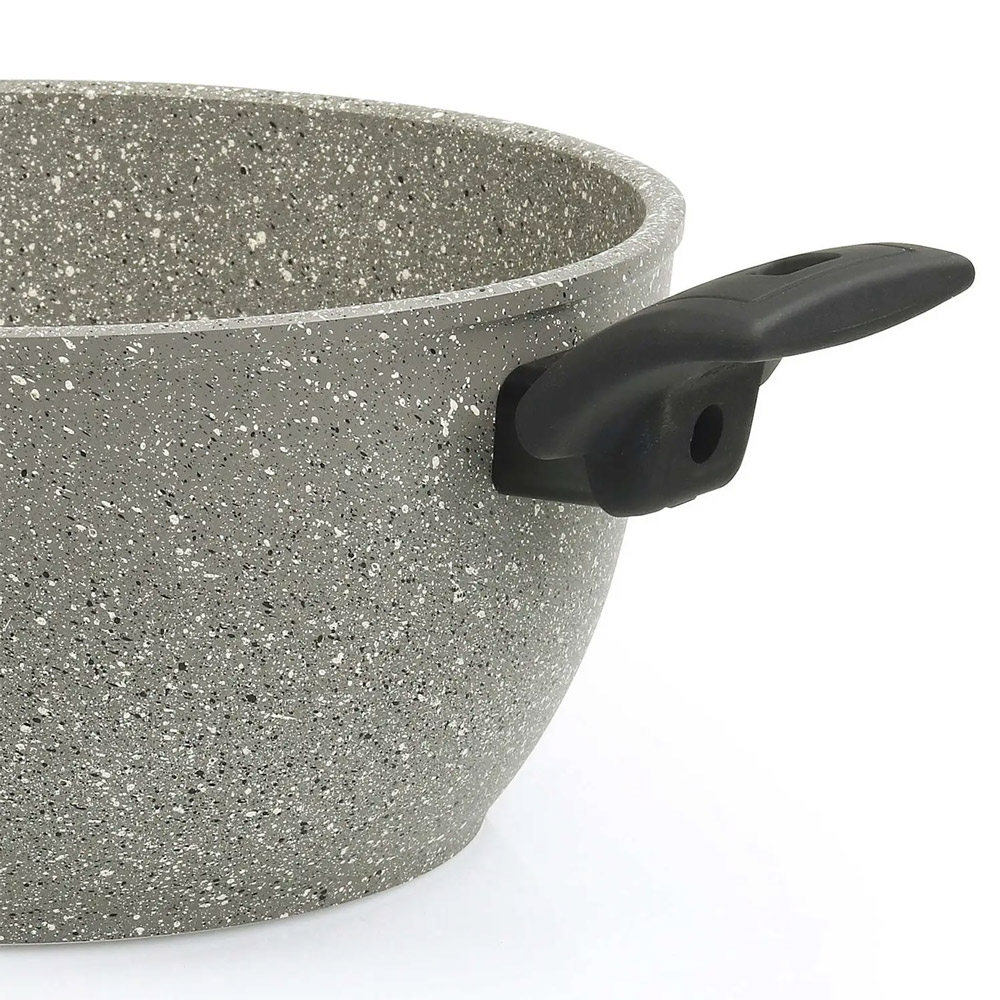 Каструля від Flonal серії Monolite - виняткова у своєму роді, завдяки товстим стінкам і дну, що надає максимальні можливості приготування різних страв, справляється з різноманітними кулінарними завданнями. Ультраміцне антипригарне покриття на основі мінеральних частинок забезпечує ефективність без надлишку олії. Виготовлена з каменю, каструля Monolite об'єднує природну естетику і технологічність. Зовнішнє антипригарне покриття полегшує догляд, а бакелітові ручки залишаються прохолодними під час приготування.