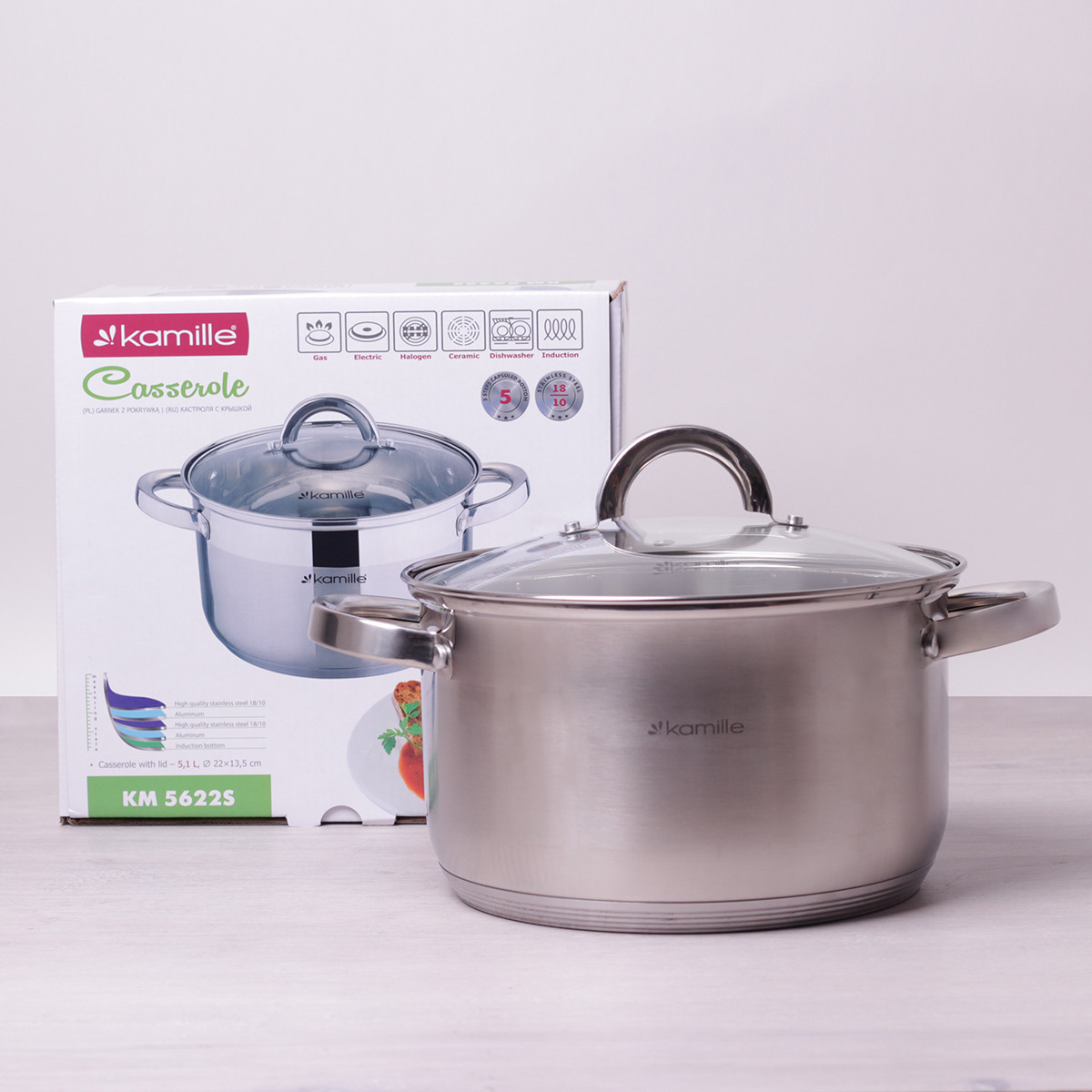 Практична і елегантна посуд від торгової марки Kamille (Україна) стане справжнім помічником для вашого кулінарної майстерності. Різні аксесуари і посуд на будь-який смак та уподобання представлені брендом у великому асортименті. В продукції Kamille поєднується зручність, функціональність, зносостійкість і сучасне оформлення.