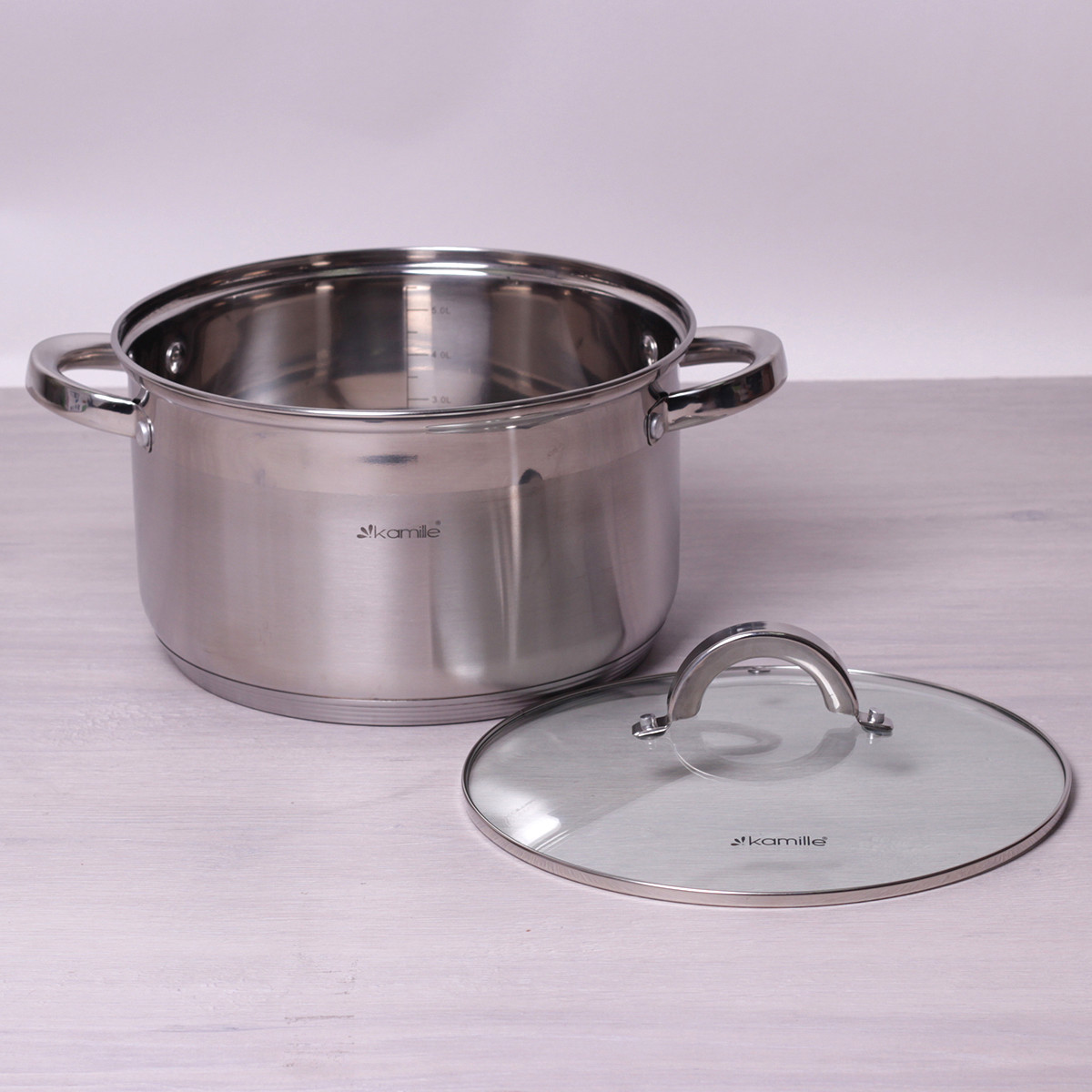 Каструля з кришкою Kamille 6.5л з нержавіючої сталі 5624S