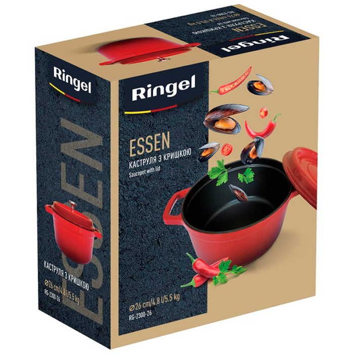 Каструля чавунна з кришкою Ringel Essen 26 см 4.8 л RG-2300-26